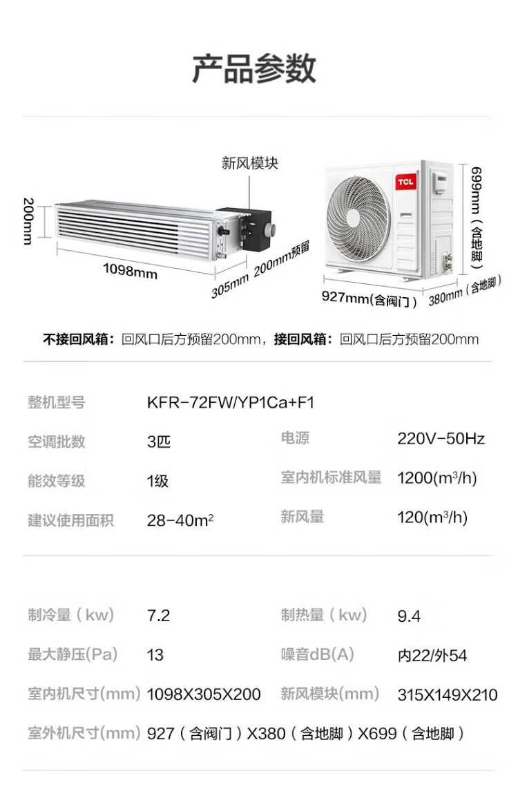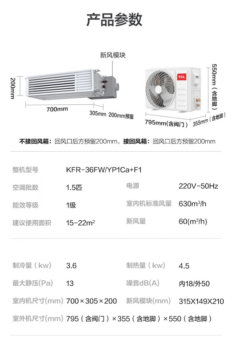 TCL central air-conditioning large 3 HP duct machine one-to-one hidden embedded ceiling air conditioner heating and cooling card machine first-level energy efficiency living room air conditioner fresh air air conditioner trade-in large 5 HP second-level energy efficiency engineering machine bare metal price commercial