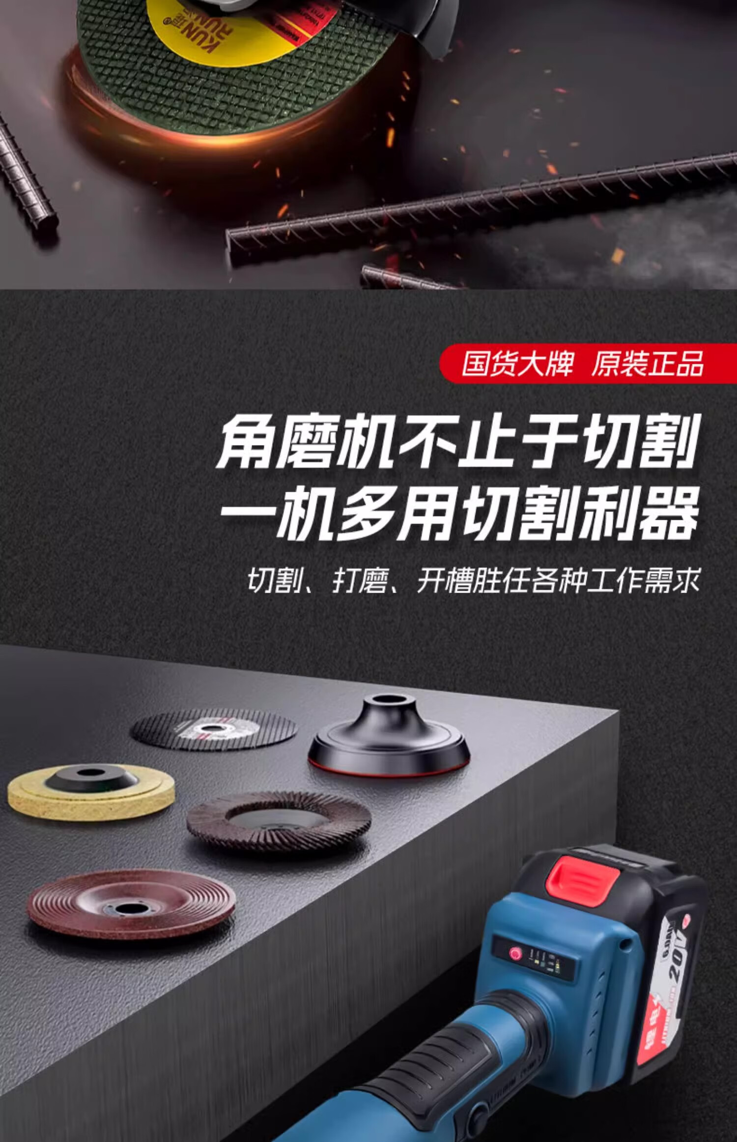 Powerful brushless angle grinder lithium battery cutting machine wireless grinder cutting disc charging into handheld 20-cell 8.0A two batteries one charge + luxury gift package