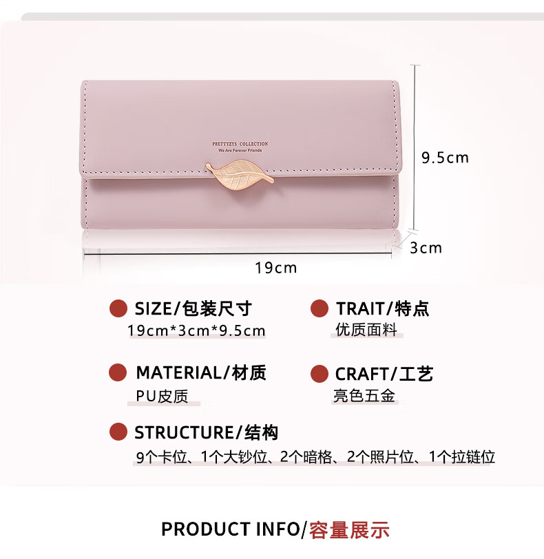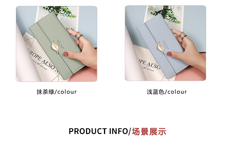 Kangaroo (KANGAROO) Wallet Women Internet Celebrity New Boutique Large Capacity Women's Long Wallet Small Fresh Leaf Card Holder Clutch Women Matcha Green