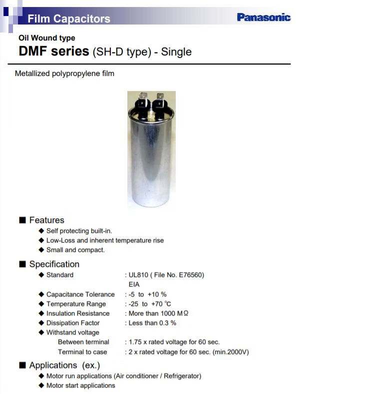 Capacitor air conditioner compressor starting capacitor 35uf outdoor unit starting universal capacitor 50uf 1.5 HP Panasonic factory Panasonic factory 15uF