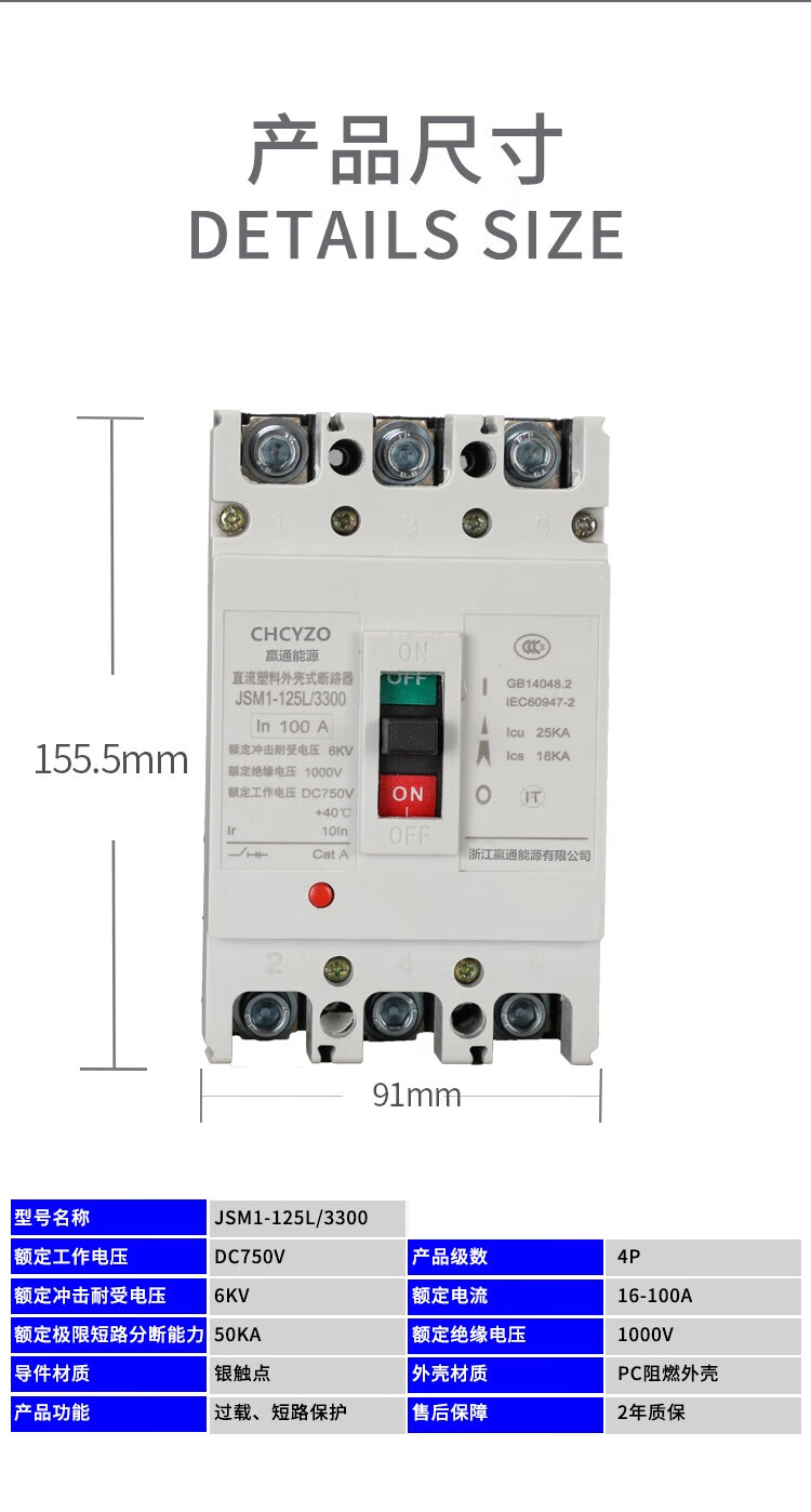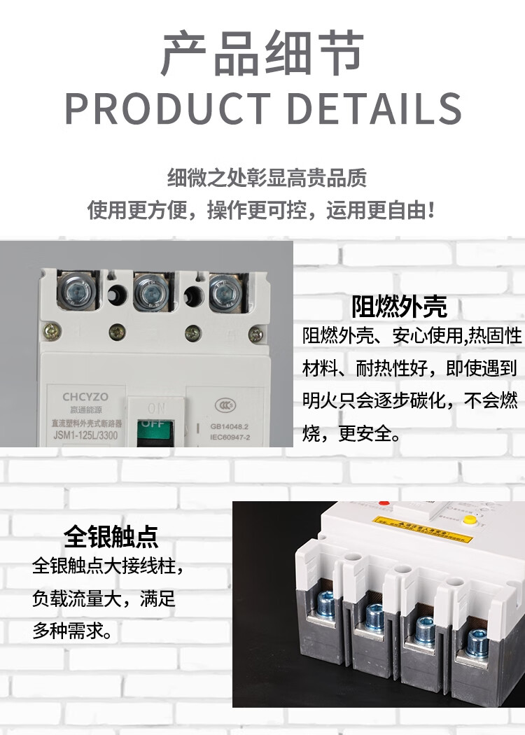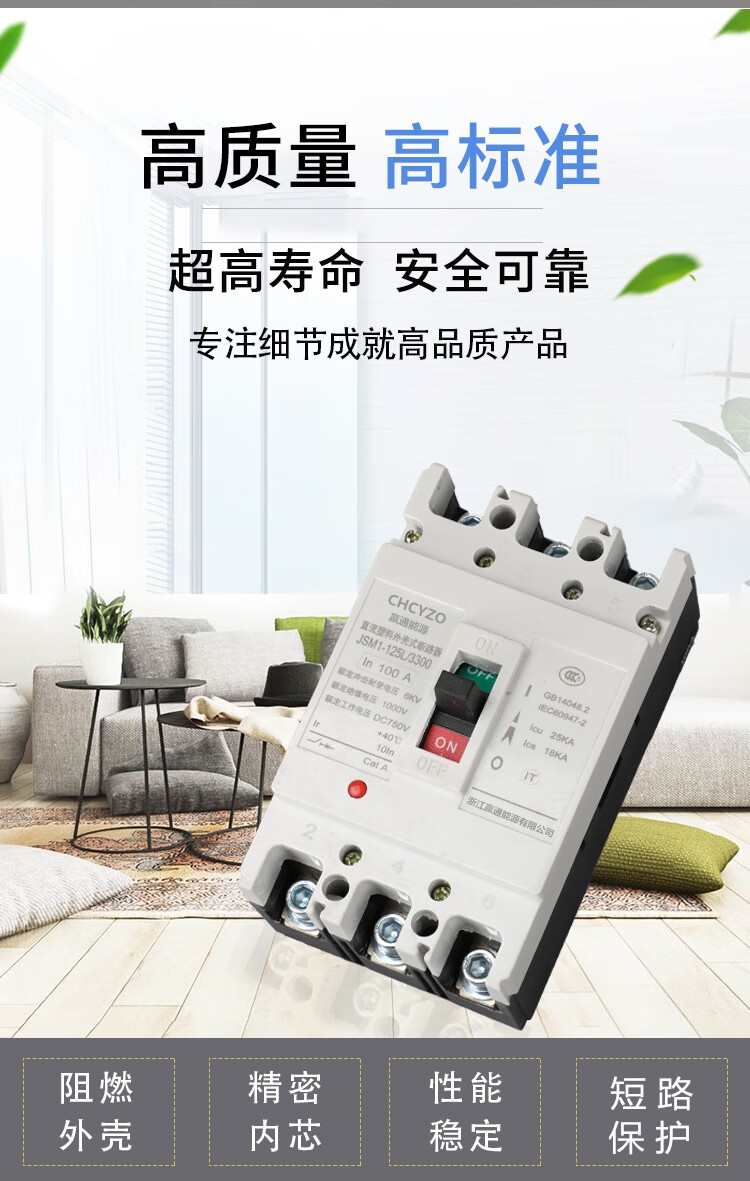 Suitable for DC molded case circuit breaker DC500V photovoltaic air switch 100A250A 400A UPS DC air switch 400A 2P