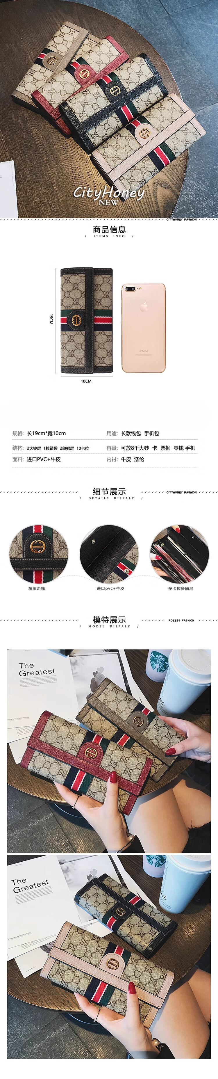 Kangaroo (KANGAROO) luxury (chi) long hand wallet women's soft cowhide large capacity wallet for mobile phone multi-function card holder trendy gray