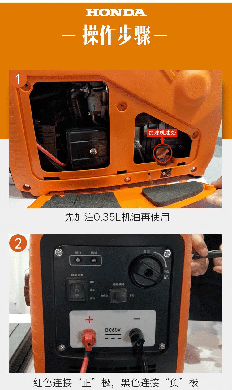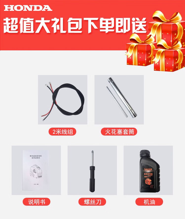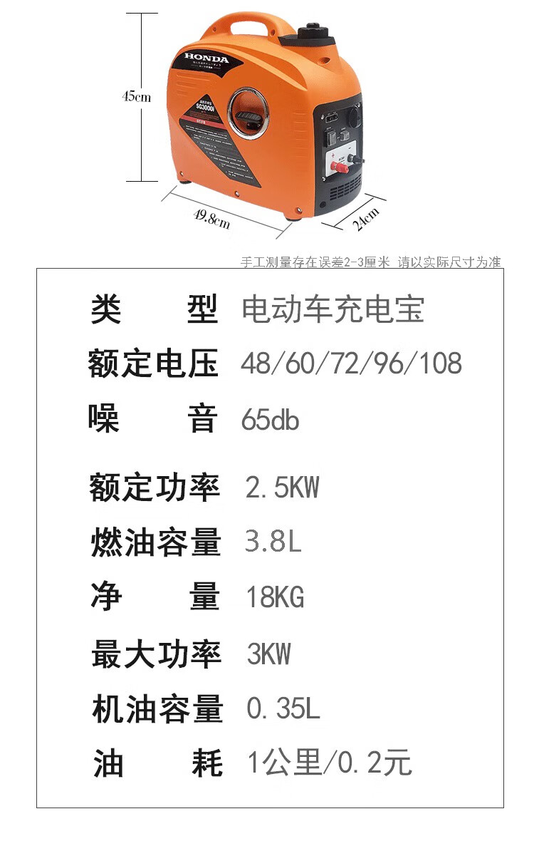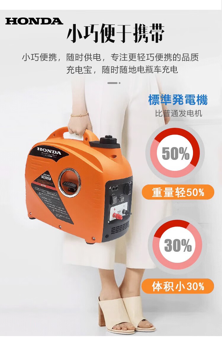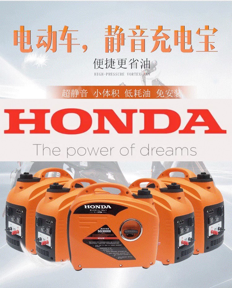 Honda portable electric vehicle range extender tricycle four-wheel portable silent gasoline generator variable frequency 60V72V96 48V--72V universal 1000W