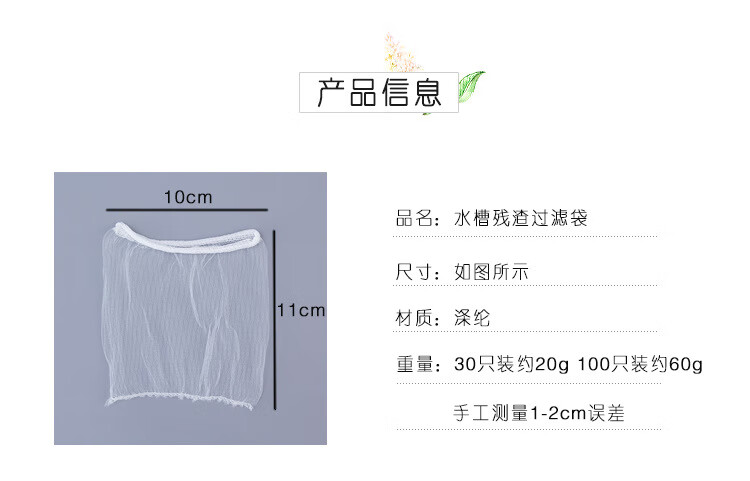Disposable kitchen sink garbage filter sewer sink dishwashing sink leftovers pool universal anti-blocking 10*11cm (1 pack of 100 pieces)