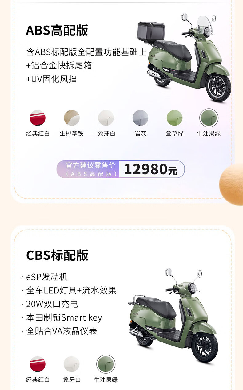 Xindazhou Honda NS125LA pedal fuel motorcycle, take-out motorcycle, fuel-efficient, store pickup, ABS standard version - raw coconut latte
