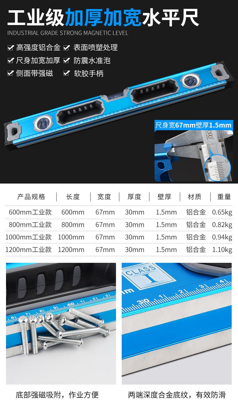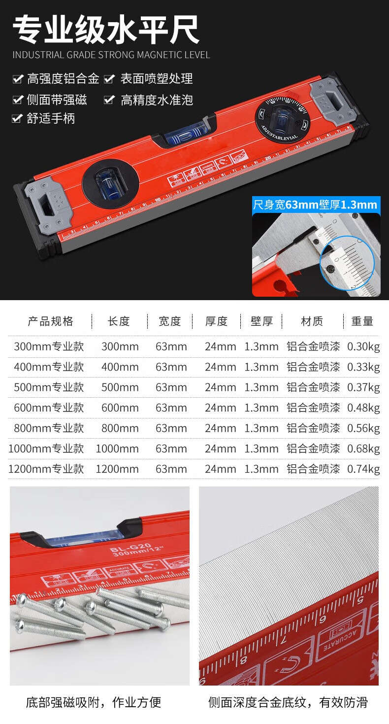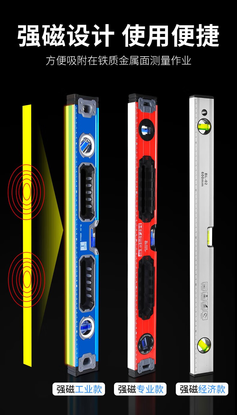 Initial concept of level ruler, high-precision level level ruler, small aluminum alloy solid anti-fall balancer tool, strong magnetic household level ruler, industrial grade strong magnetic 1200mm
