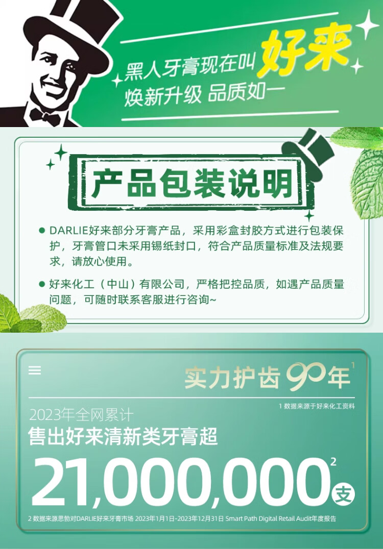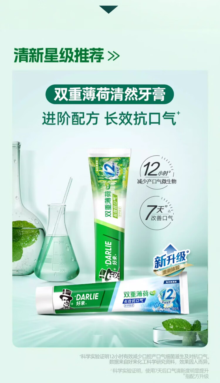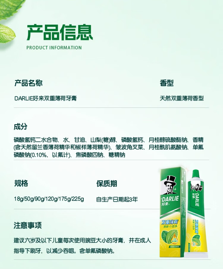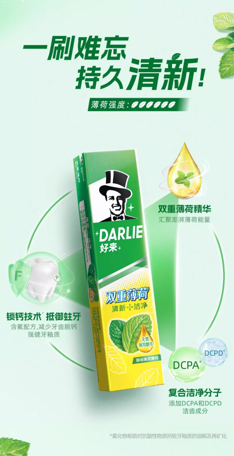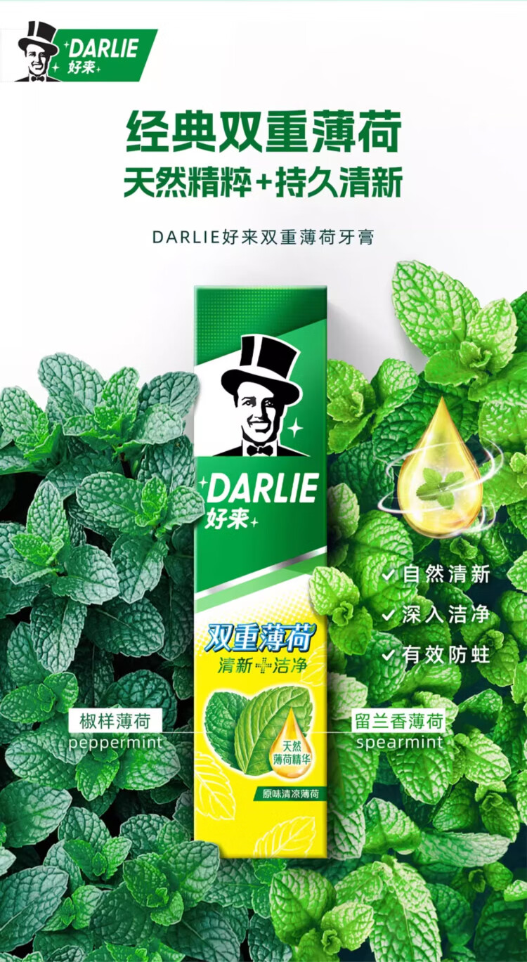Haolai (DARLIE) original (black) toothpaste double mint flavor containing fluoride to prevent tooth decay for adults fresh breath family affordable pack authentic double mint 90g*1 stick