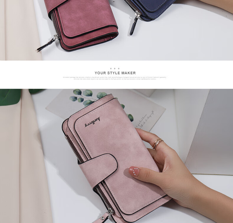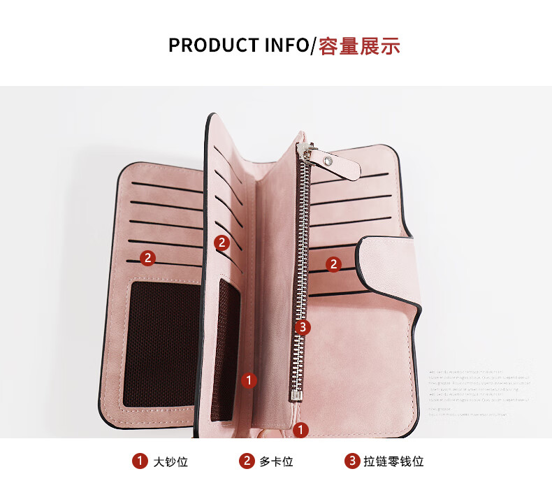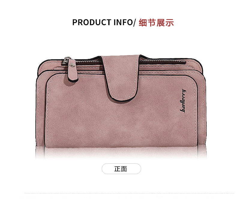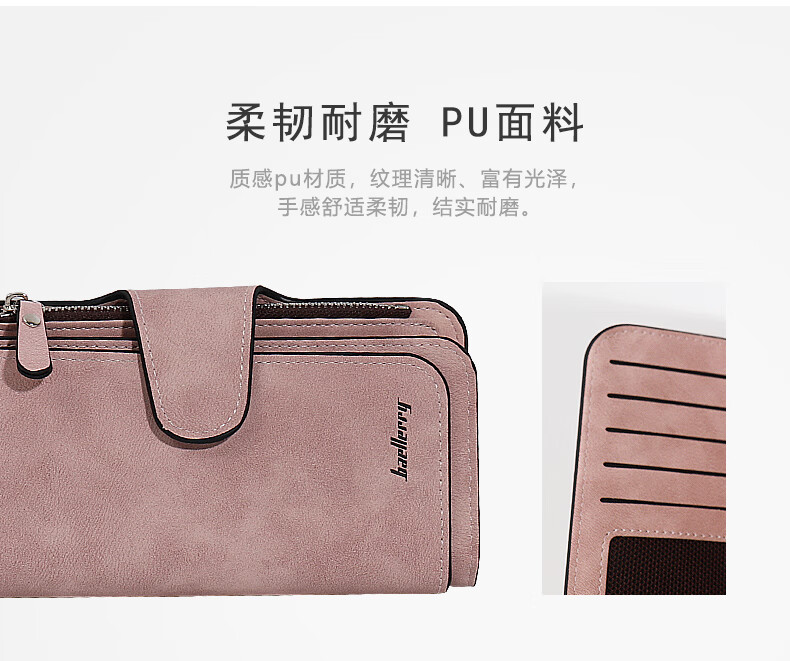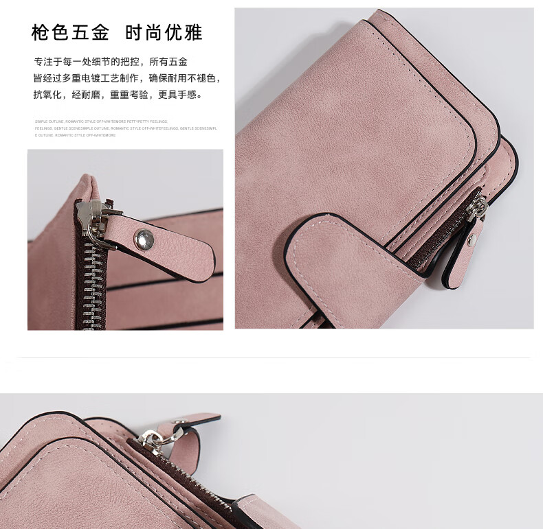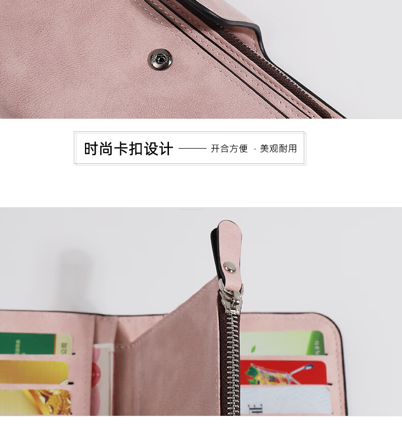 Kangaroo (KANGAROO) card holder women's exquisite high-end soft leather frosted wallet women's long multi-card slot folding card holder wallet all-in-one bag for women pink