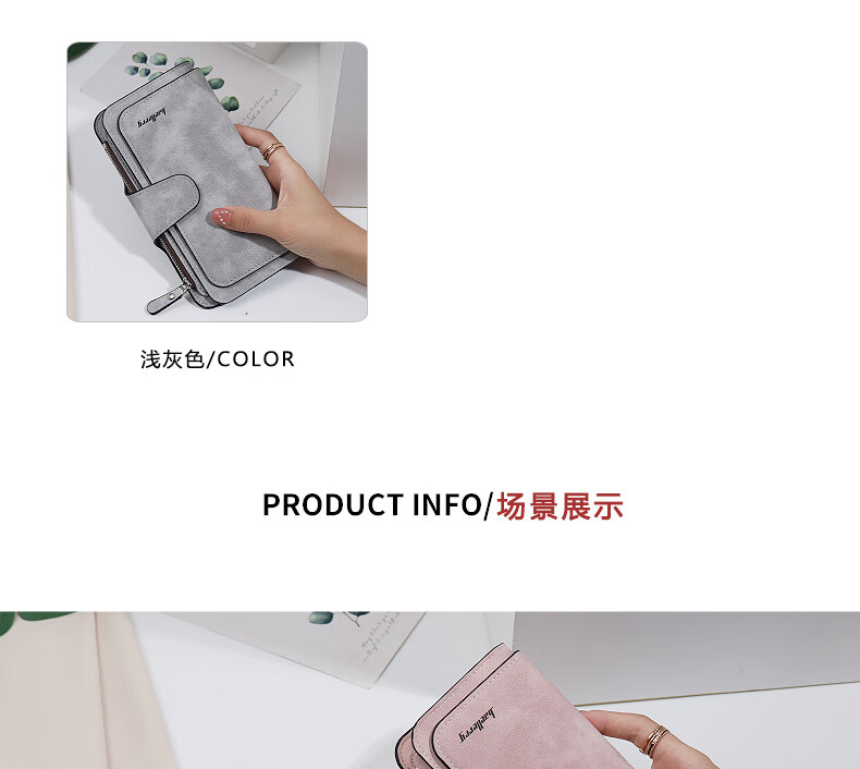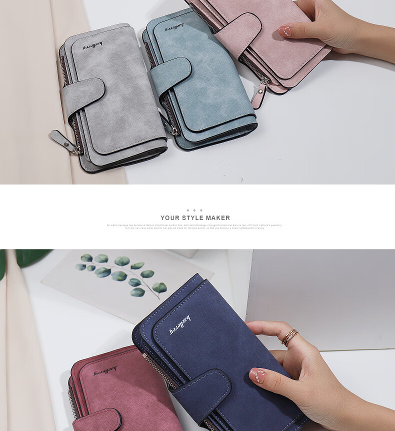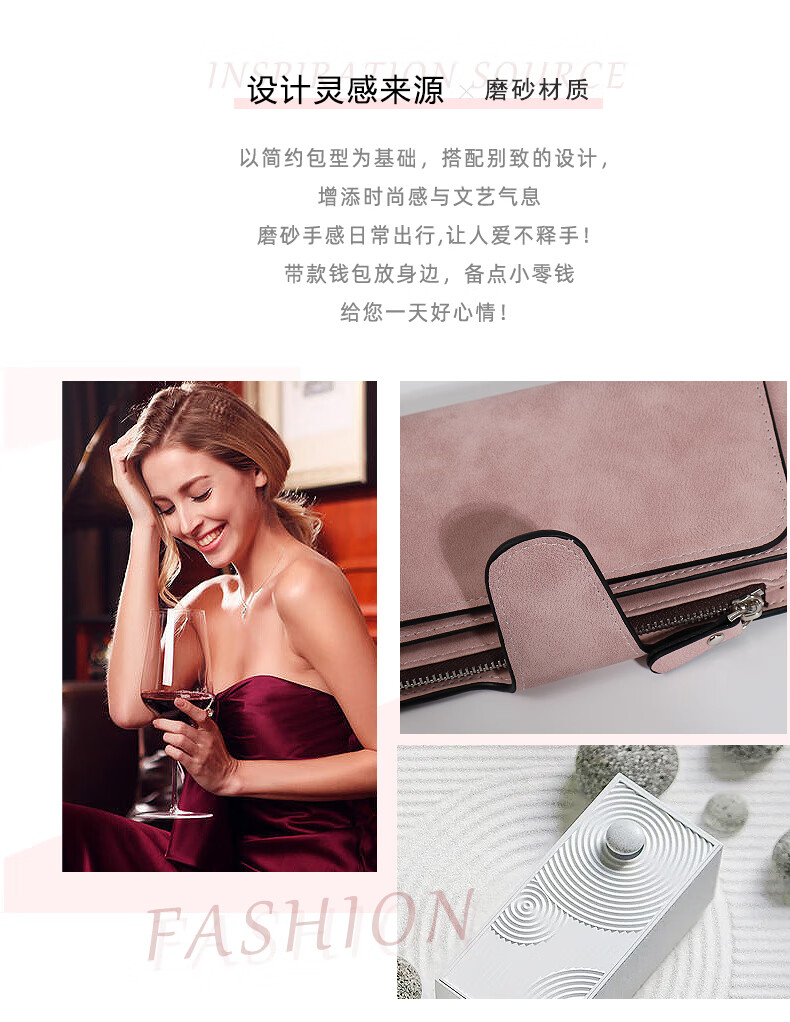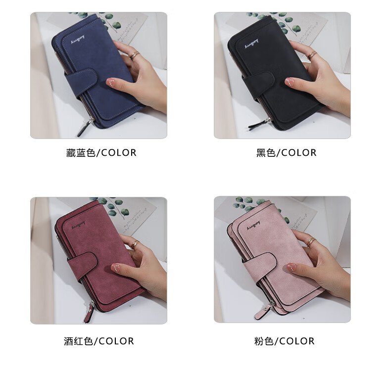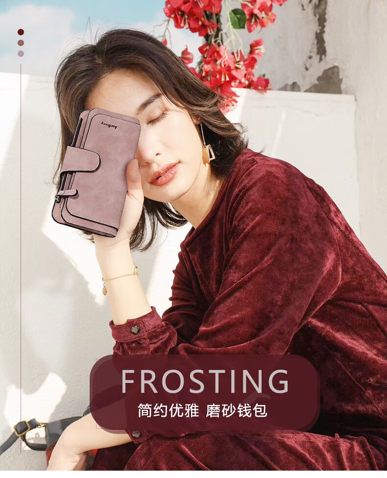 Kangaroo (KANGAROO) card holder women's exquisite high-end soft leather frosted wallet women's long multi-card slot folding card holder wallet all-in-one bag for women pink