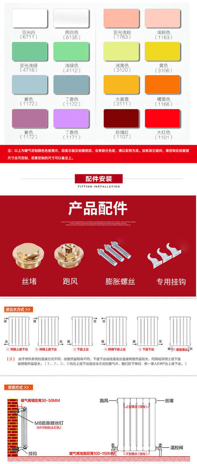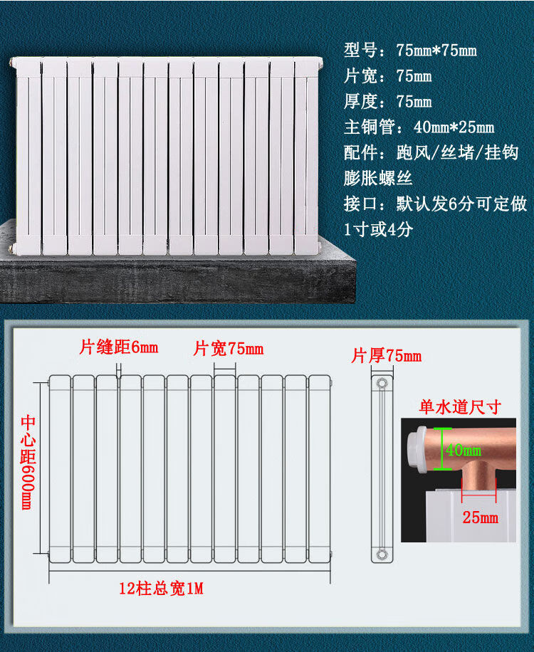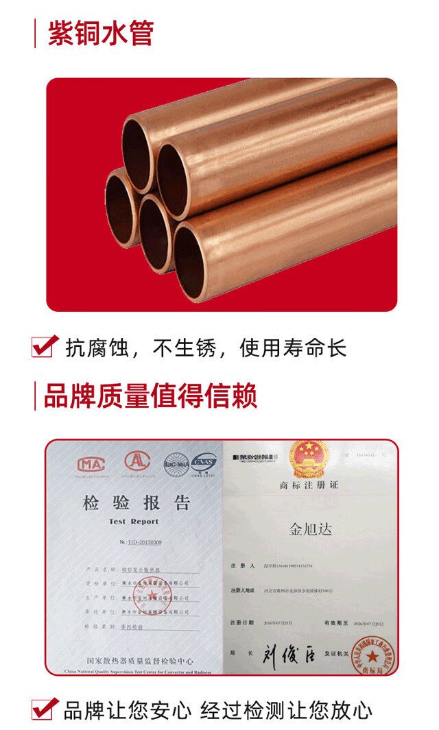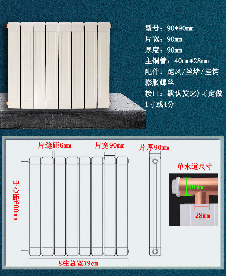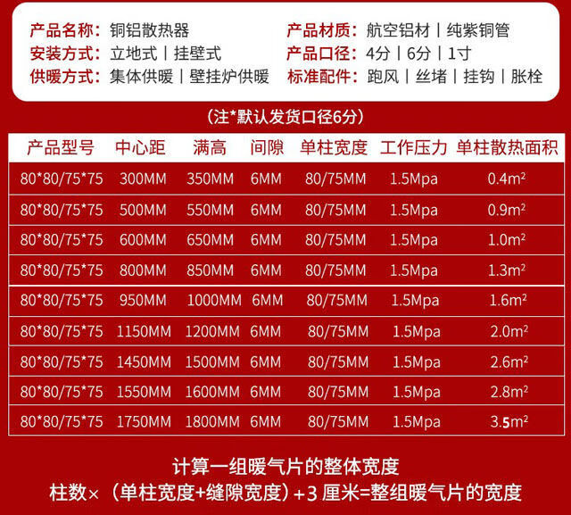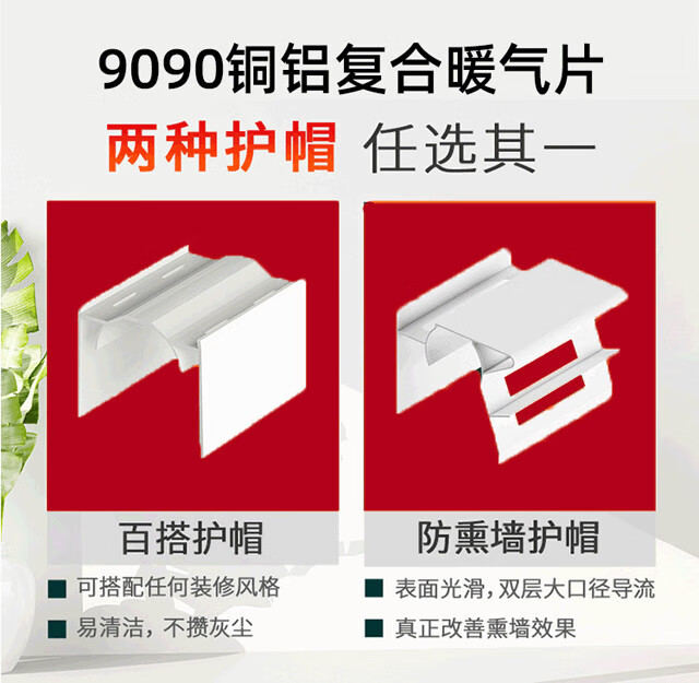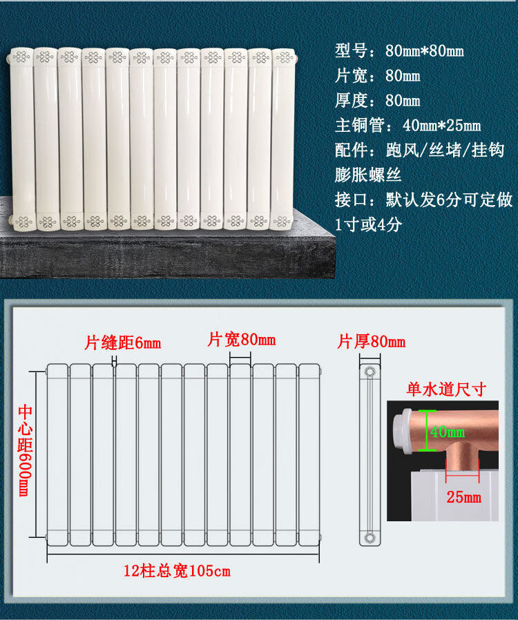 FANCYCHIC radiator household water heating copper-aluminum composite radiator wall-mounted radiator central heating vertical heater popular copper-aluminum 80 type - thick copper tube 40-25 vertical 1.6 meters high * a set of 10