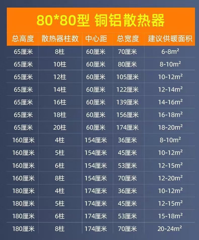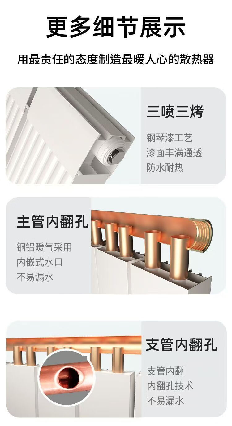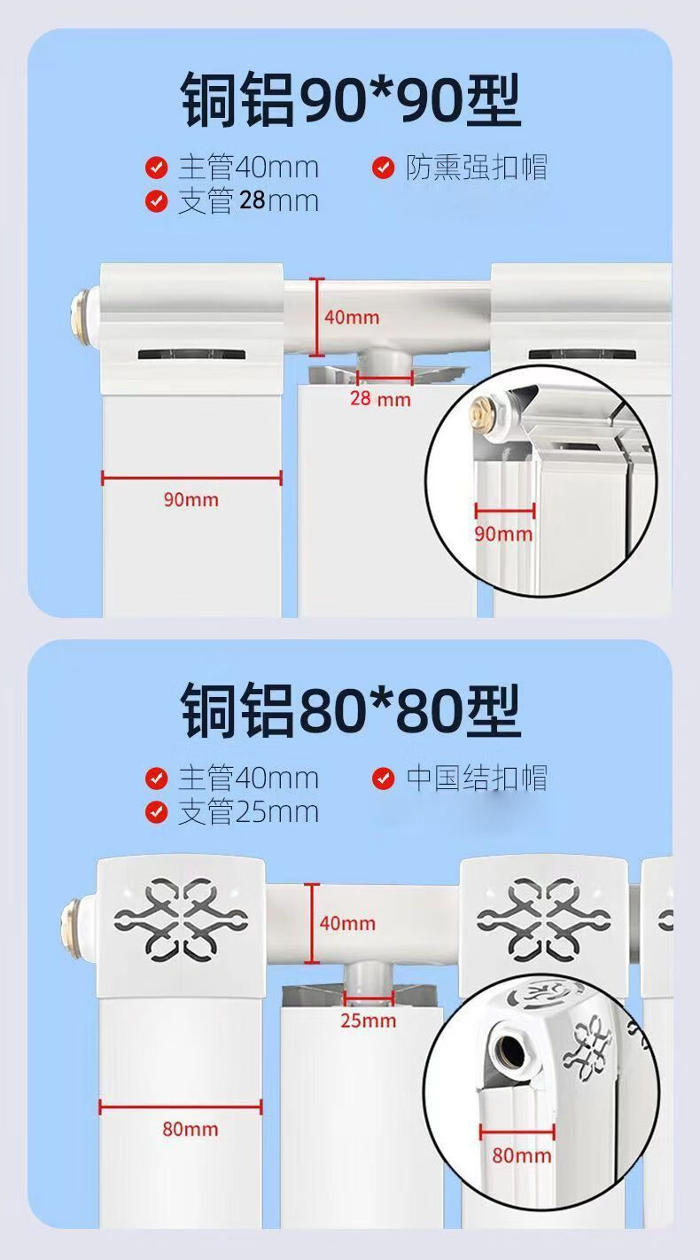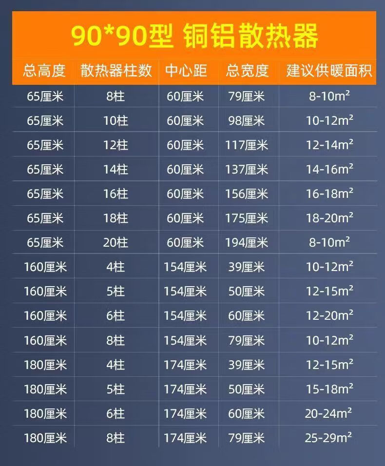 FANCYCHIC radiator copper-aluminum composite household water heating radiator wall-mounted radiator central heating vertical heater 80 thick copper tubes high 10 columns set 650mm