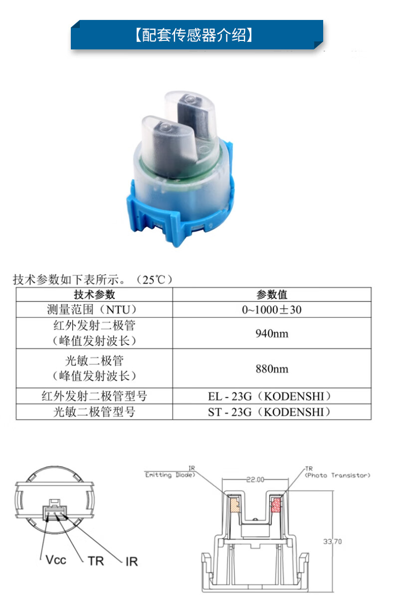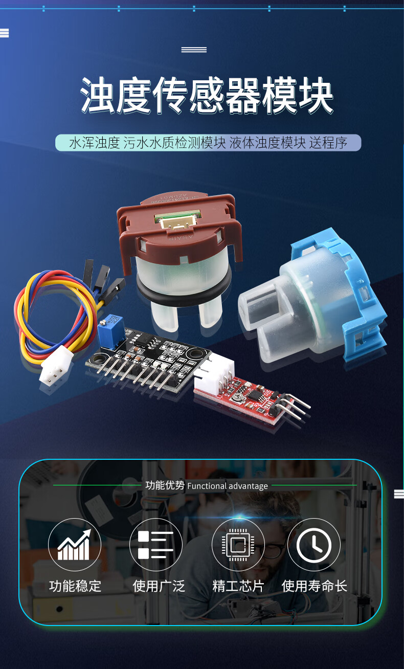 Turbidity sensor module Water turbidity Sewage water quality detection module Liquid turbidity module Send program Aosong turbidity sensor (AZDM01) wiring + red board module