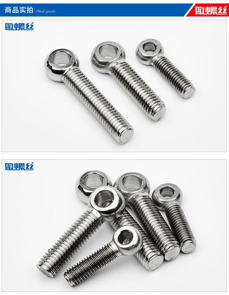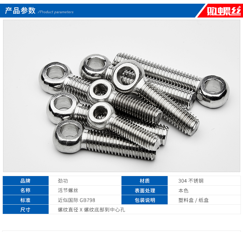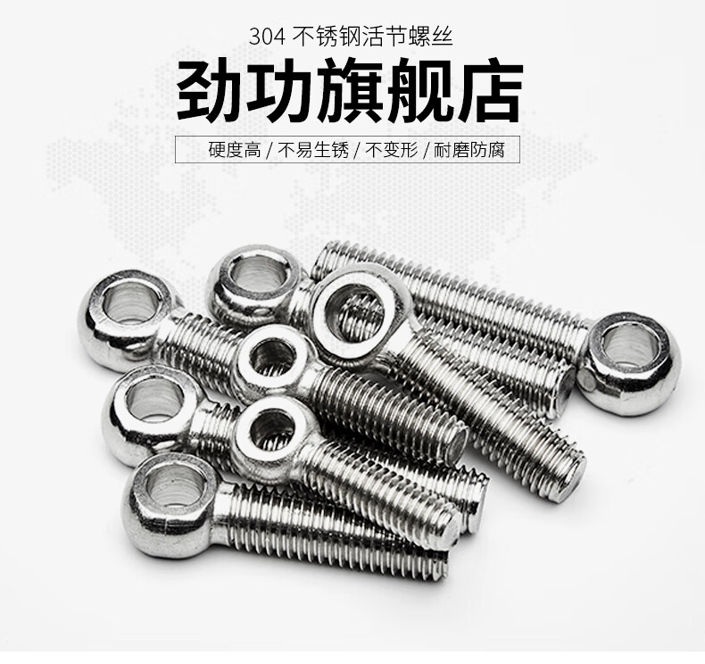 Jinggong M5M6M8 304 stainless steel live joint screw, live joint screw, slip knot screw, lifting ring, fish eye screw, hole bolt, M20*190 (1 piece), thread length 80