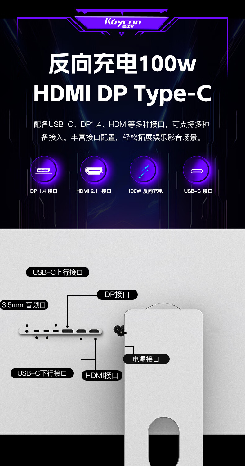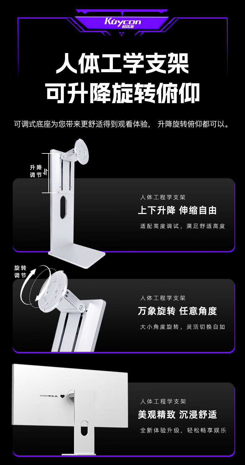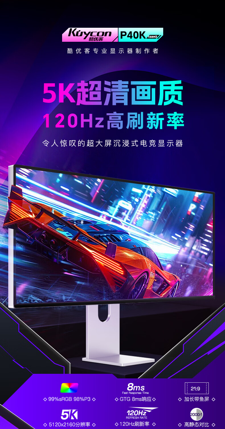 KUYCON KUYCON 5K monitor high brush 120Hz e-sports display design clip stock trading office hairtail retina 100w rechargeable aluminum alloy straight screen vertical screen P40K 40-inch 5K120Hz matte screen with lifting bracket-simple model
