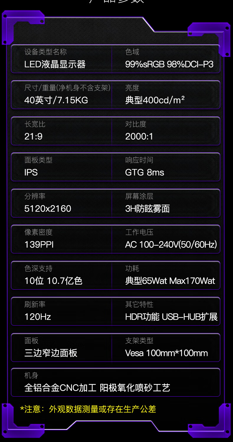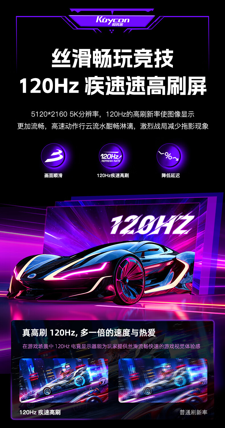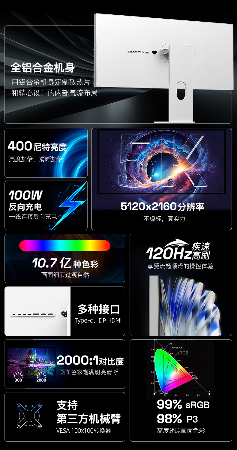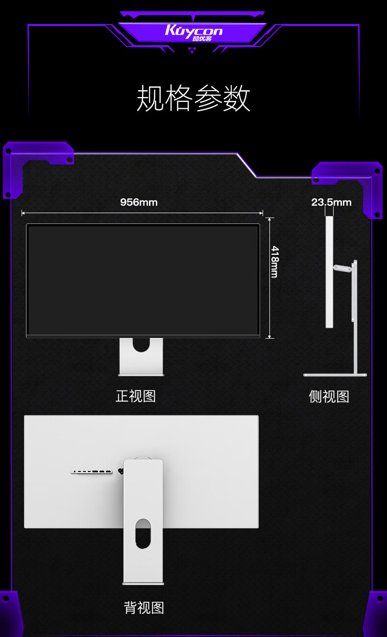 KUYCON KUYCON 5K monitor high brush 120Hz e-sports display design clip stock trading office hairtail retina 100w rechargeable aluminum alloy straight screen vertical screen P40K 40-inch 5K120Hz matte screen with lifting bracket-simple model