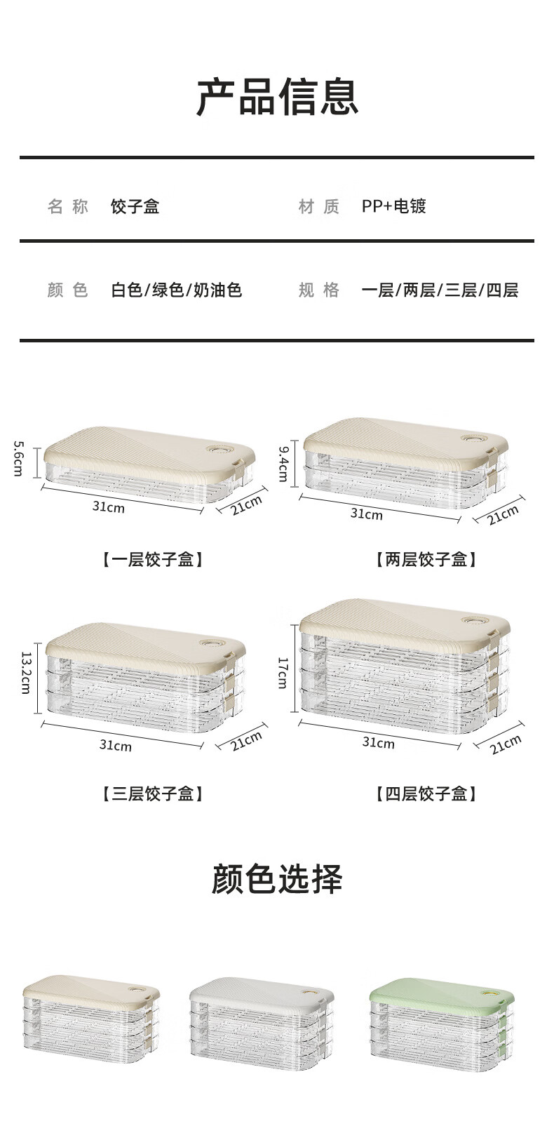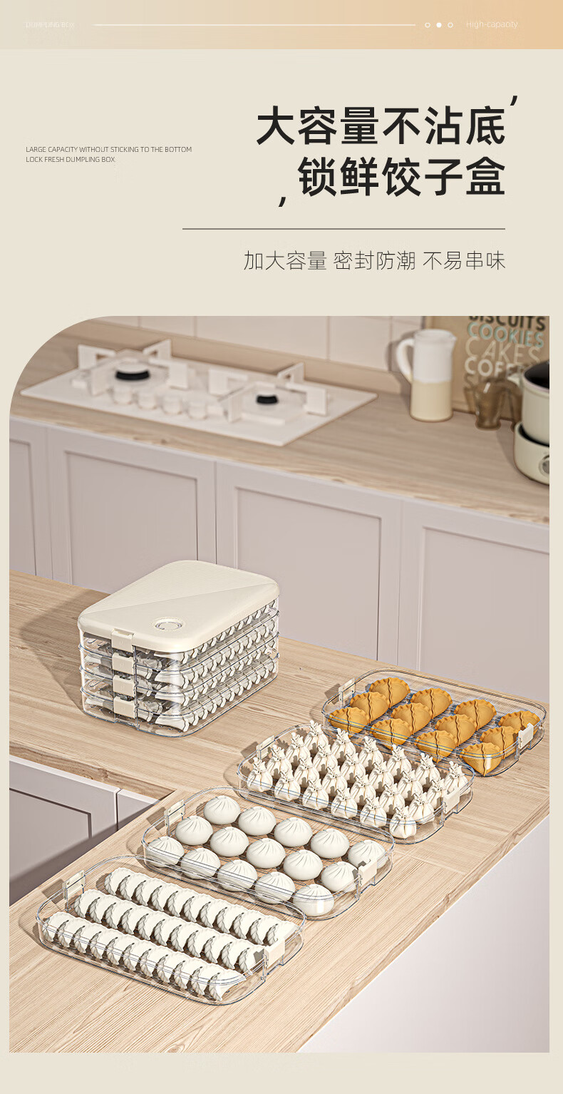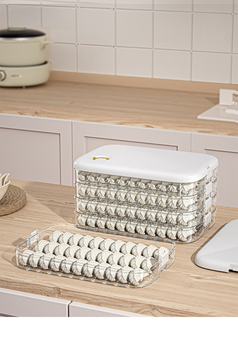 Zi Jiafu dumpling box storage refrigerator Chinese New Year dumpling box multi-layer food grade wonton preservation tray box freezer box white one layer one cover