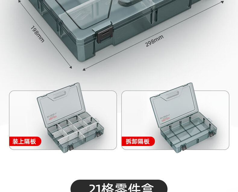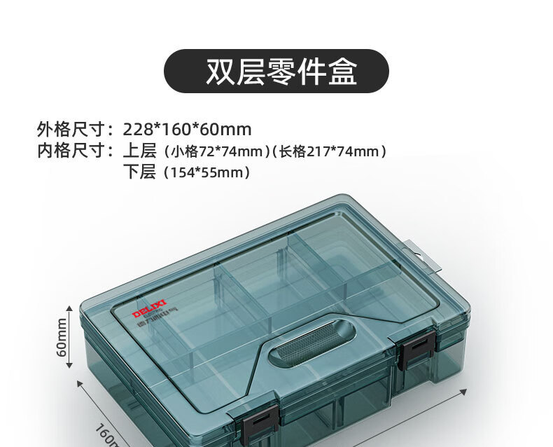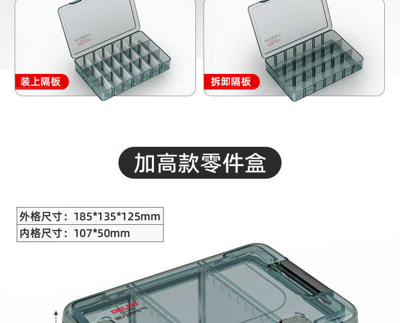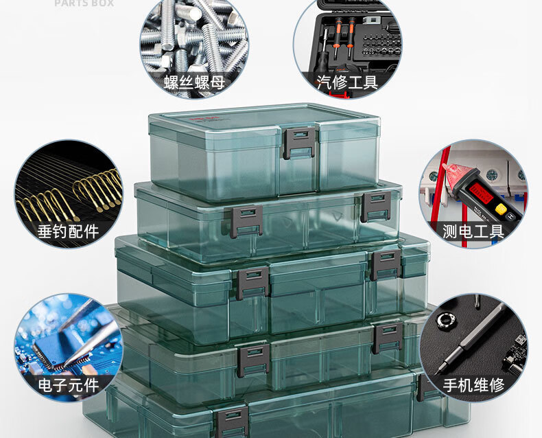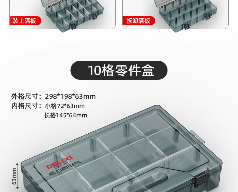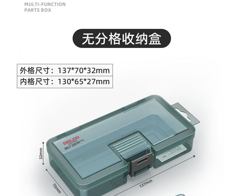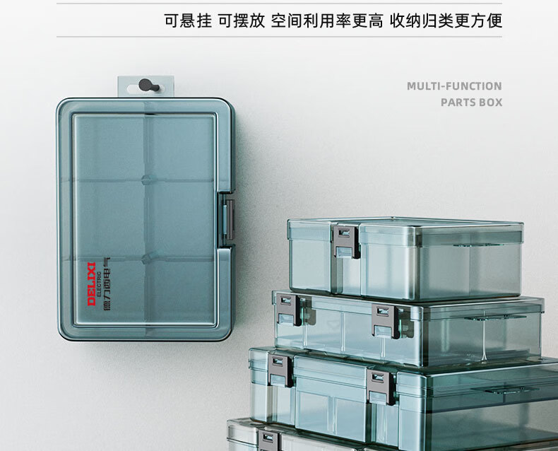 Delixi Electrical Plastic Parts Box Rectangular Grid Screw Tool Box Combined Thickened Transparent Storage Box Large No Grid Upgraded Reinforcing Ribs