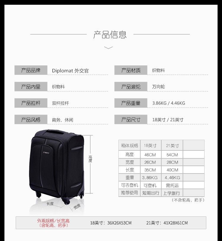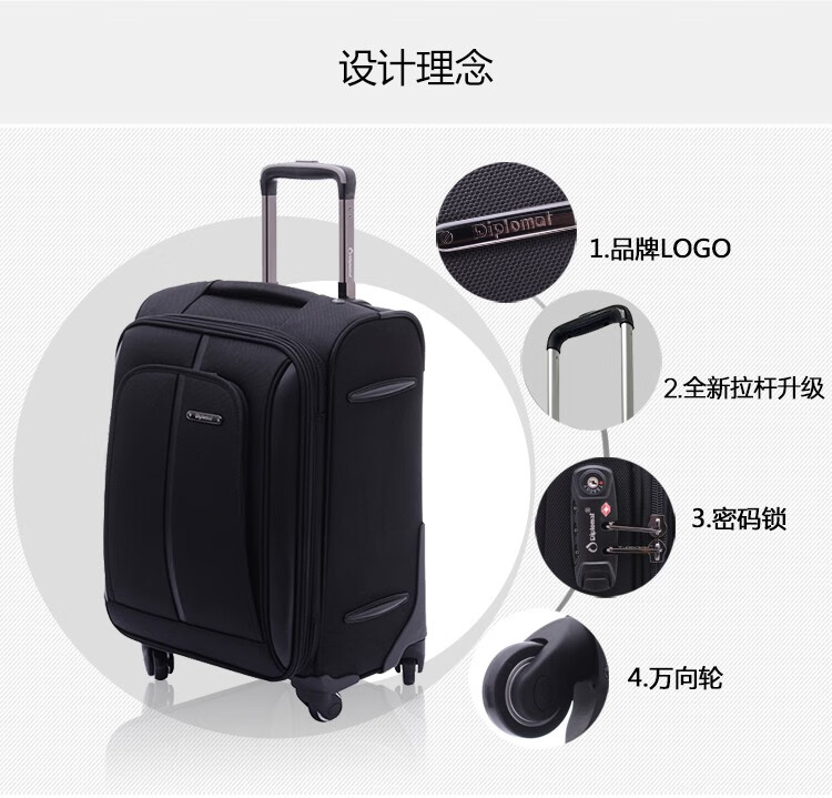 Diplomat diplomat suitcase classic men's business soft case boarding trolley case DEF-1551A/B series black 18 inches - suitable for short distances and boarding
