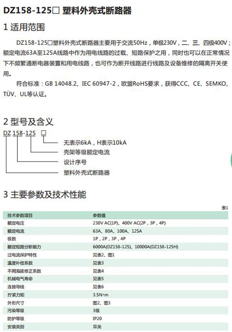 DZ158-125 80A 100A circuit breaker high current circuit breaker high power 100A 2P