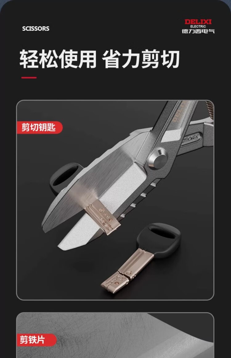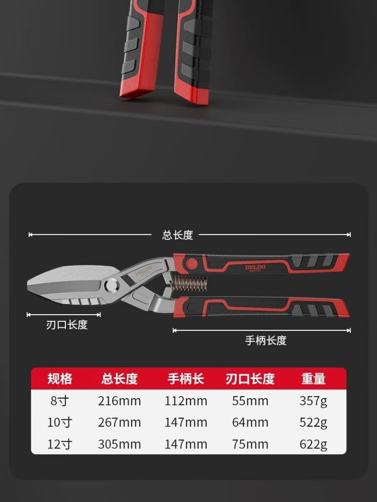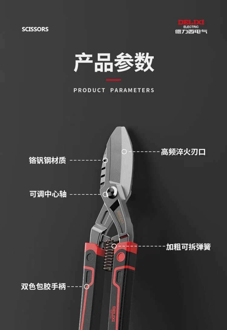 Delixi iron sheet scissors, iron sheet special keel scissors artifact, industrial grade high hardness and powerful stainless steel scissors, aviation scissors, industrial grade German style iron sheet scissors 12 inches