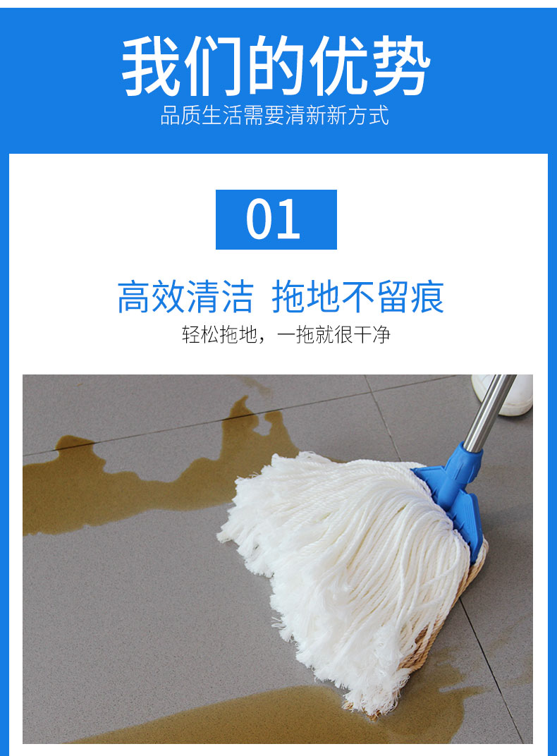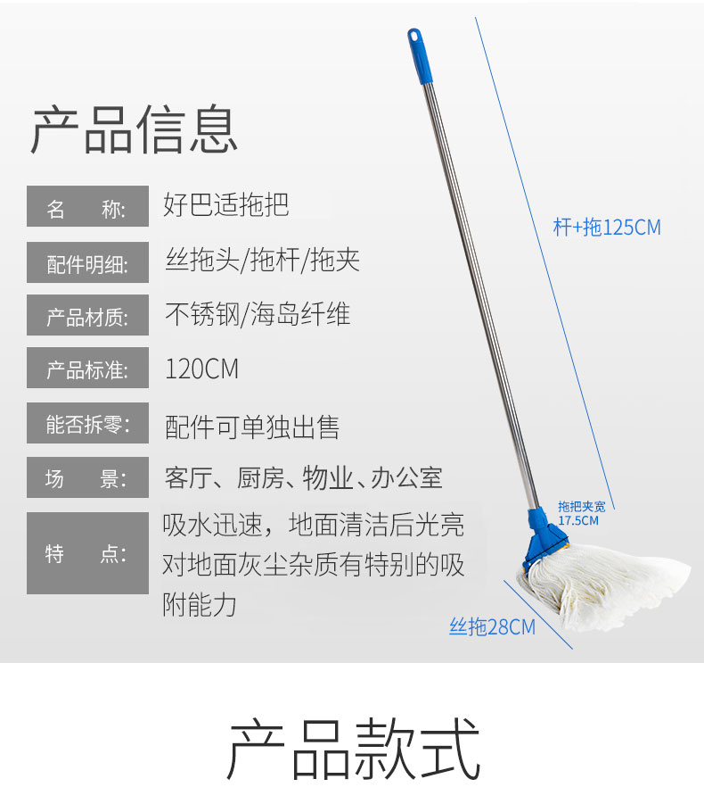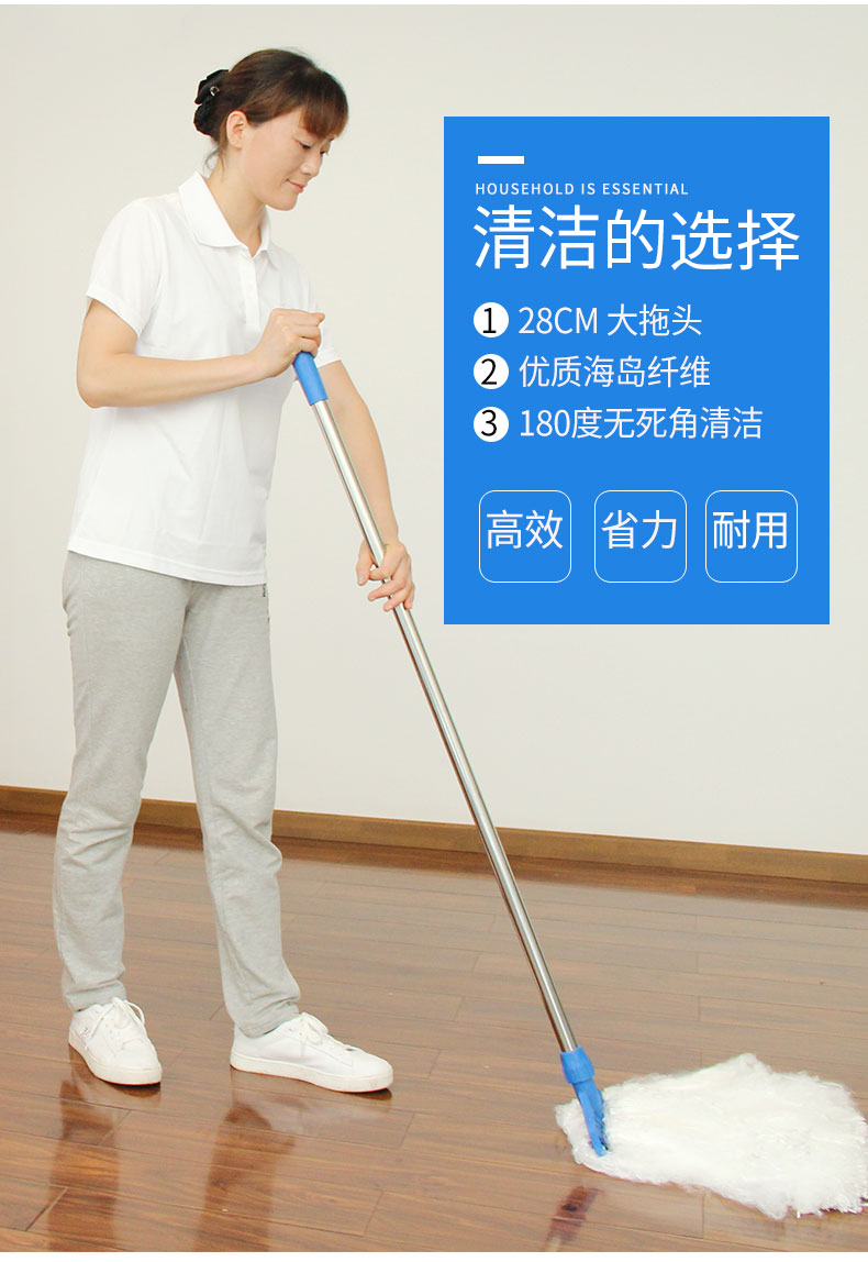 Haoba non-shedding, absorbent silk cotton mop, wood floor wax mop, microfiber mop, replaceable mop head, ply silk mop set plus replacement head, 1 rod + 1 clip +