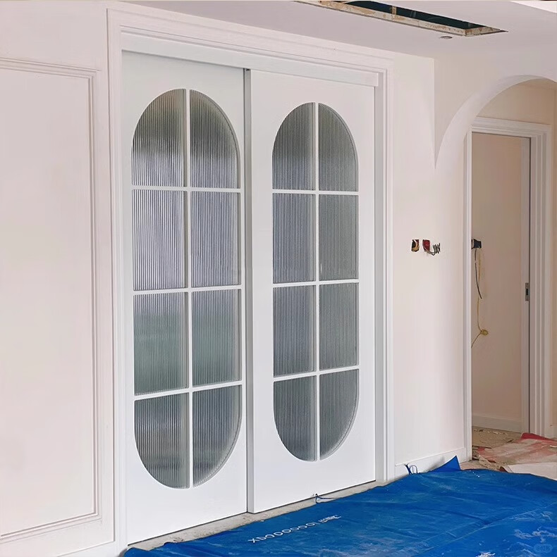Kezitu customized solid wood lattice sliding door Changhong glass bedroom door French style hanging rail door partition kitchen door interior door customized