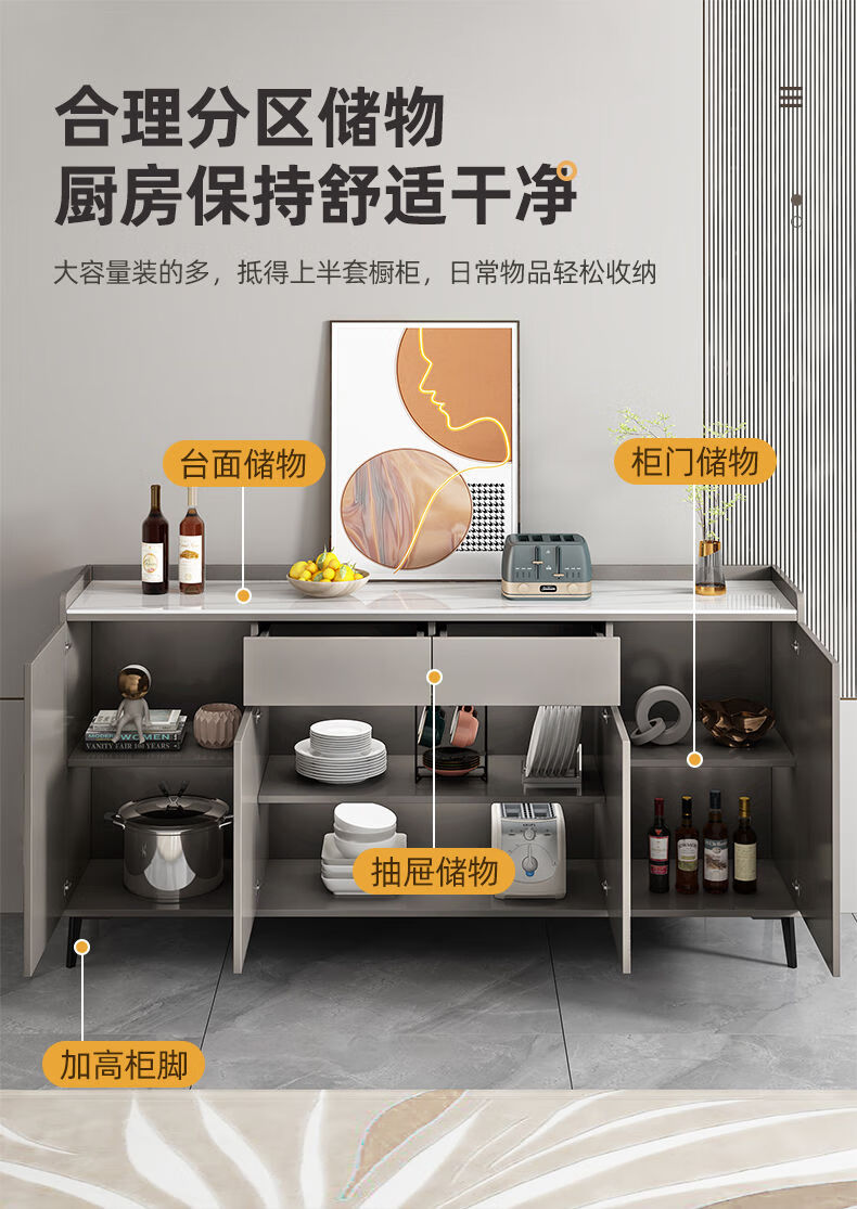 Wen Yijia customized sideboard modern minimalist living room wine cabinet tea cabinet kitchen storage cabinet storage cabinet cabinet slate new Chinese style walnut color 120cm three-door model snow mountain white rock