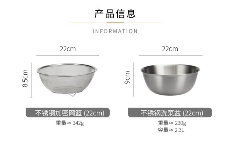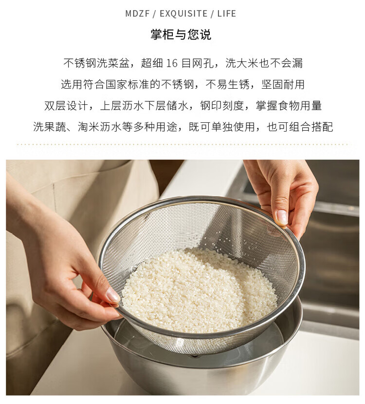 Sungsa Japanese 304 stainless steel leaky basin household double-layer rice washing sieve food-grade vegetable basin drain basket rice cleaning artifact drain basket + stainless steel basin (22cm)