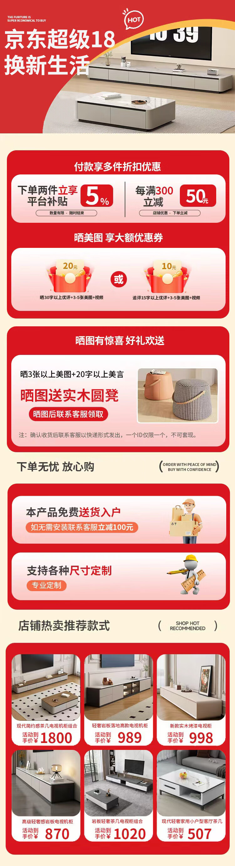 Termite solid wood painted TV cabinet floor-standing simple light luxury style slate TV cabinet coffee table combination cabinet living room storage cabinet 2.0 meter TV cabinet solid wood painted