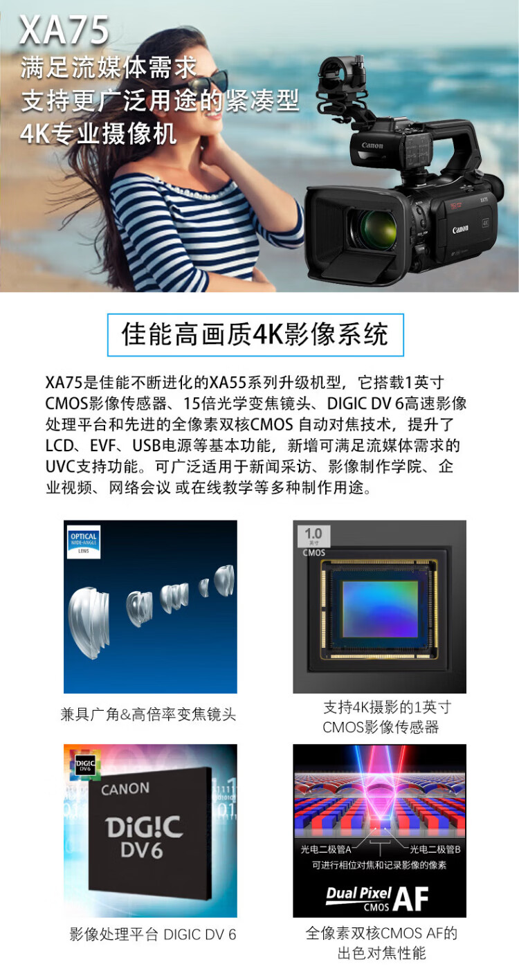 Canon camera Professional high-definition 4K digital handheld camcorder Home conference live broadcast photography 4K high-definition camera Canon XA70 camera Official standard package Does not include memory cards and other necessary accessories ~ It is recommended to purchase a package