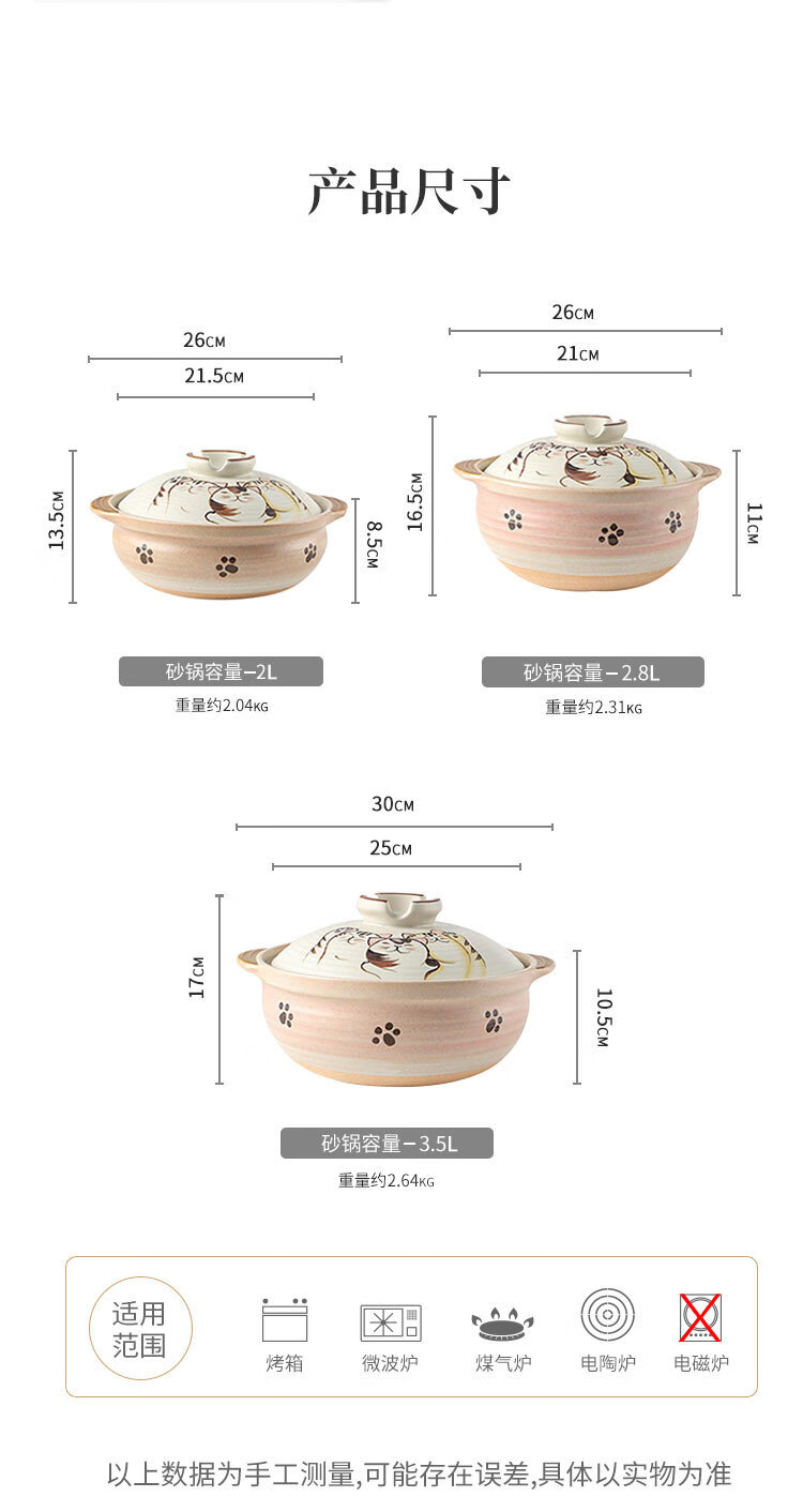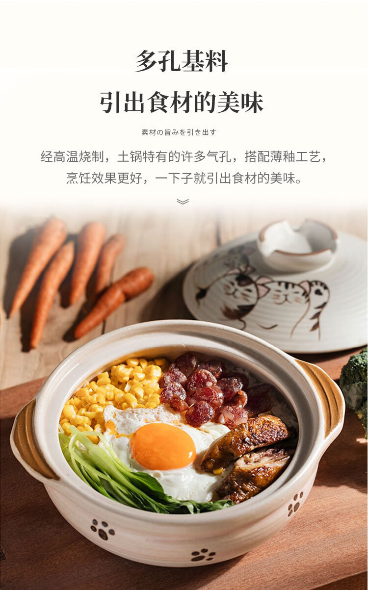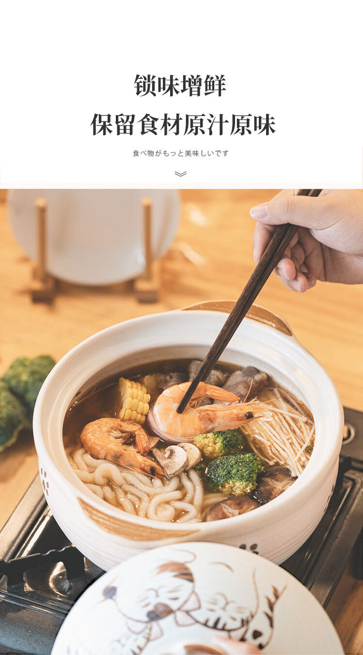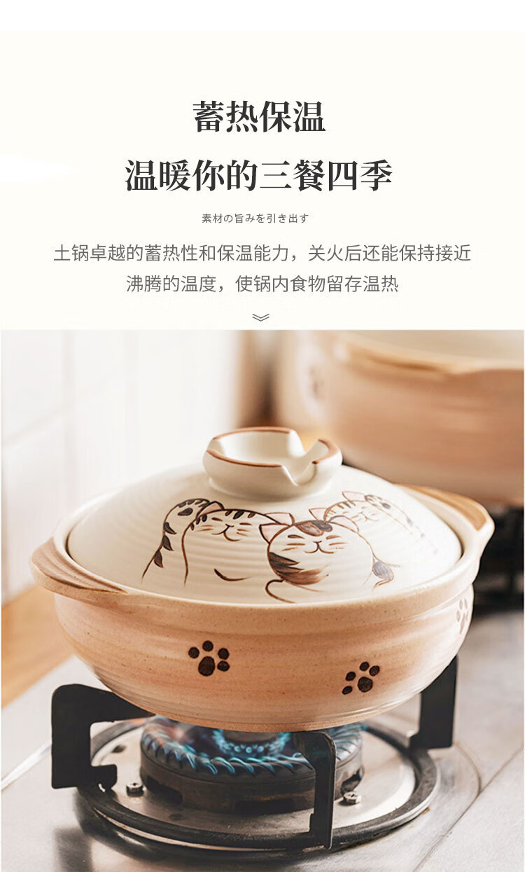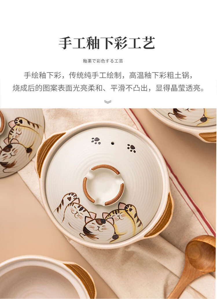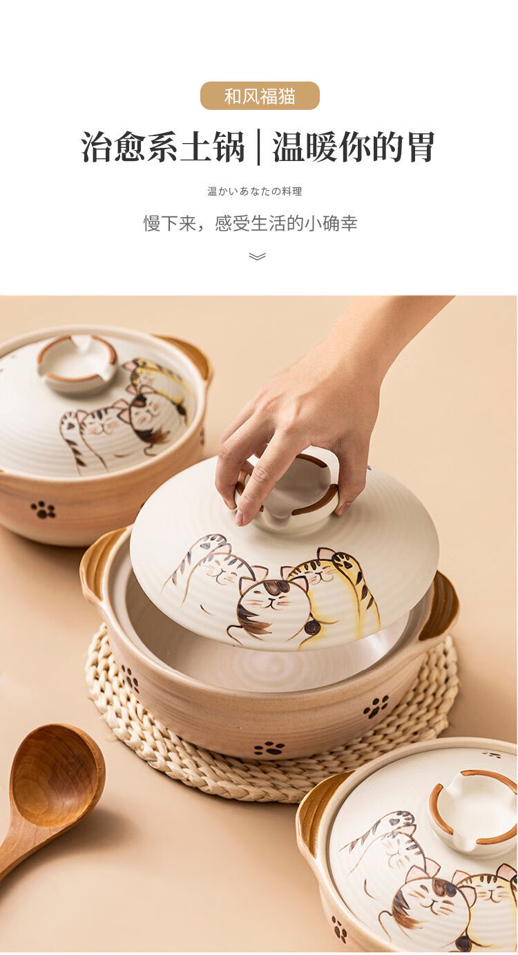 Wantu Shao Fu Mao Japanese Clay Casserole Cartoon Ceramic Porridge, Soup and Stew Meat Casserole High Temperature Resistant Gas Stove Open Flame Household Kitchen Fu Mao No. 8 Pot (Suitable for 4-5 People) 3.5L