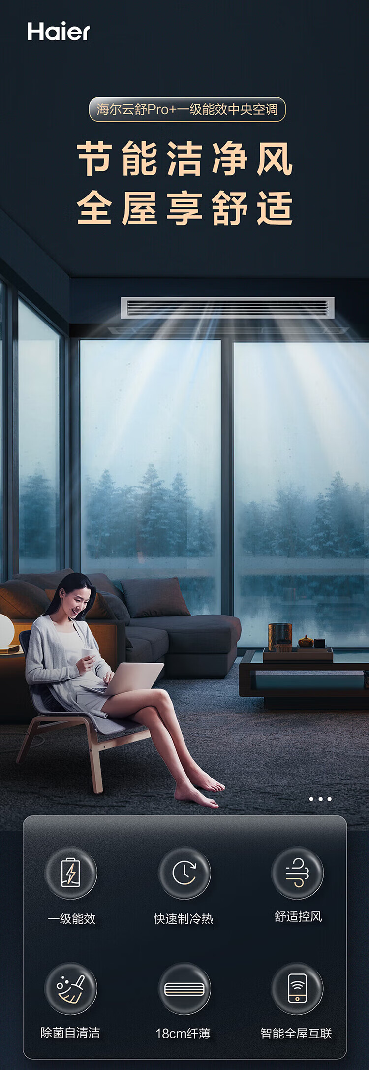 Haier central air conditioner Yunshu Pro+ is energy-saving, one-to-four household multi-split one-to-five duct machine, one-to-six, full DC variable frequency formaldehyde removal, whole house purification, 15% off for 6 HP when ordering, first-class energy efficiency, new product Yunshu Pro+, one-to-five, fast and long-lasting formaldehyde removal