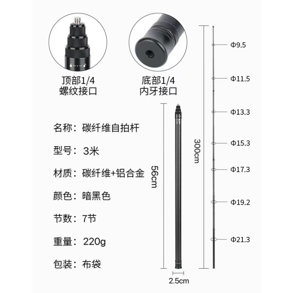 WLOONG shadow stone Insta360 invisible selfie stick Osmo360 panoramic camera tripod extension rod insta360x5x4x3 bracket accessories selfie stick tripod all-in-one