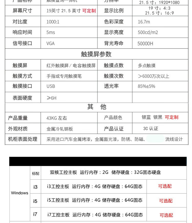Floor-standing touch screen query all-in-one machine vertical terminal industrial control cabinet touch display customized industrial stand-alone machine 19 chassis + touch display + host