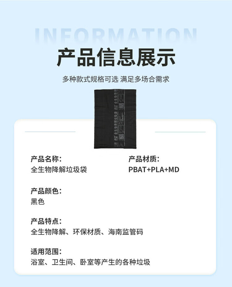 Biodegradable garbage bag Hainan plastic ban fully biodegradable hotel thickening garbage cleaning bag Hainan supervision code customization/sample Ask customer service