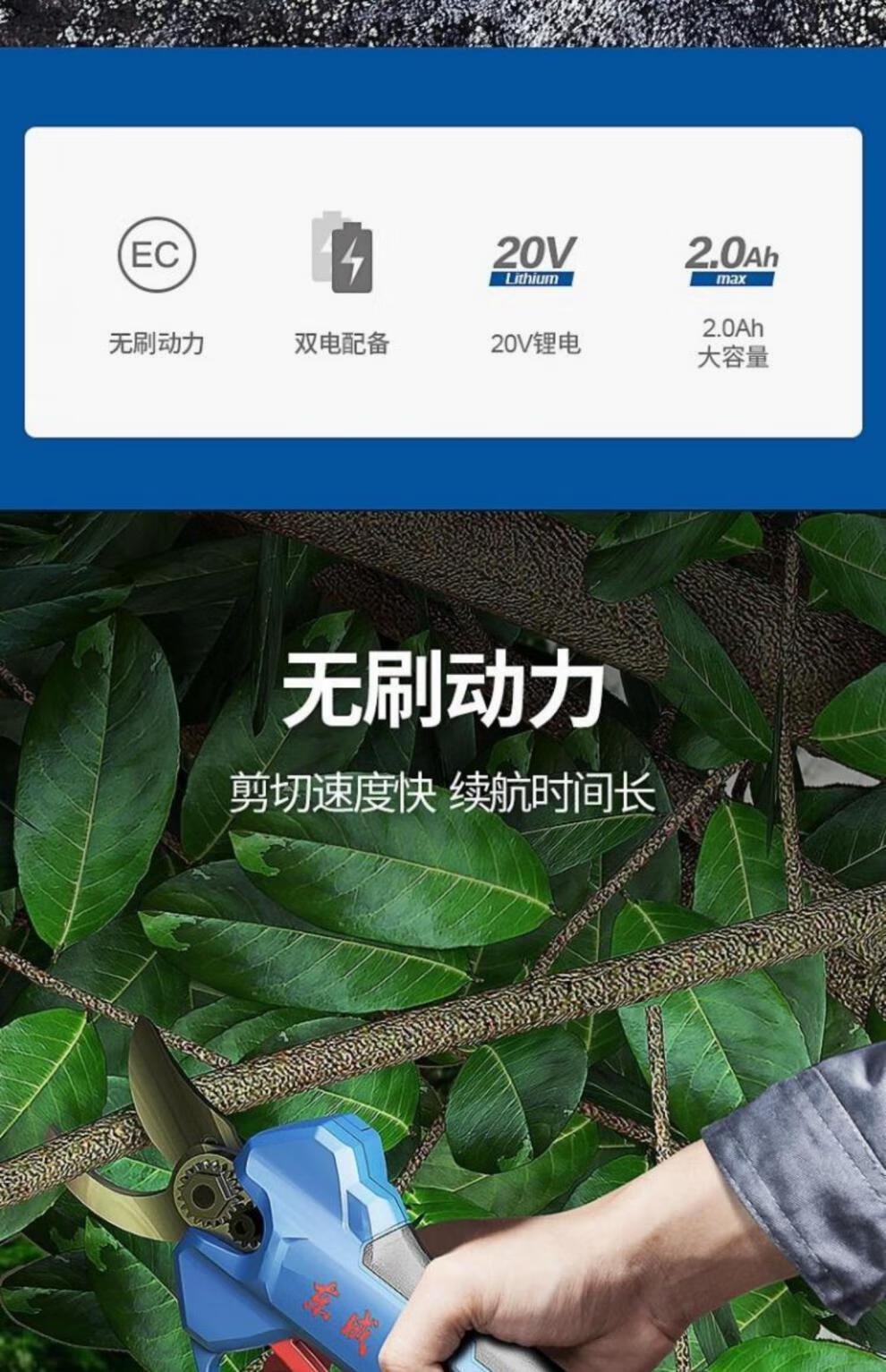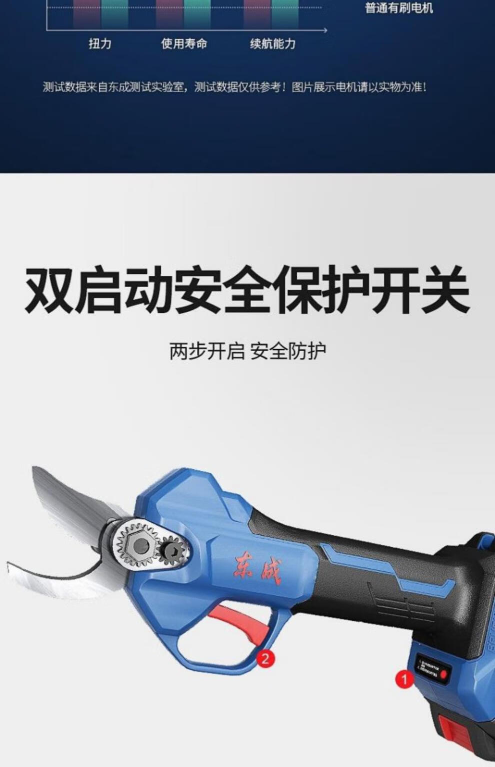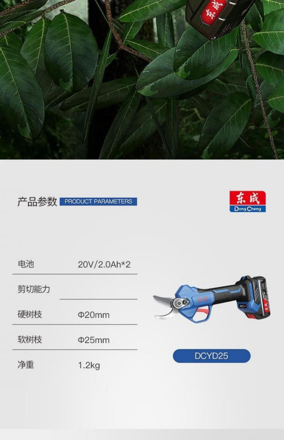 Dongcheng electric pruning shears rechargeable fruit tree shears thick tree shears garden branches lithium-ion shears Dongcheng scissors pruning machine DCYD352.0Ah two batteries and one charge factory standard