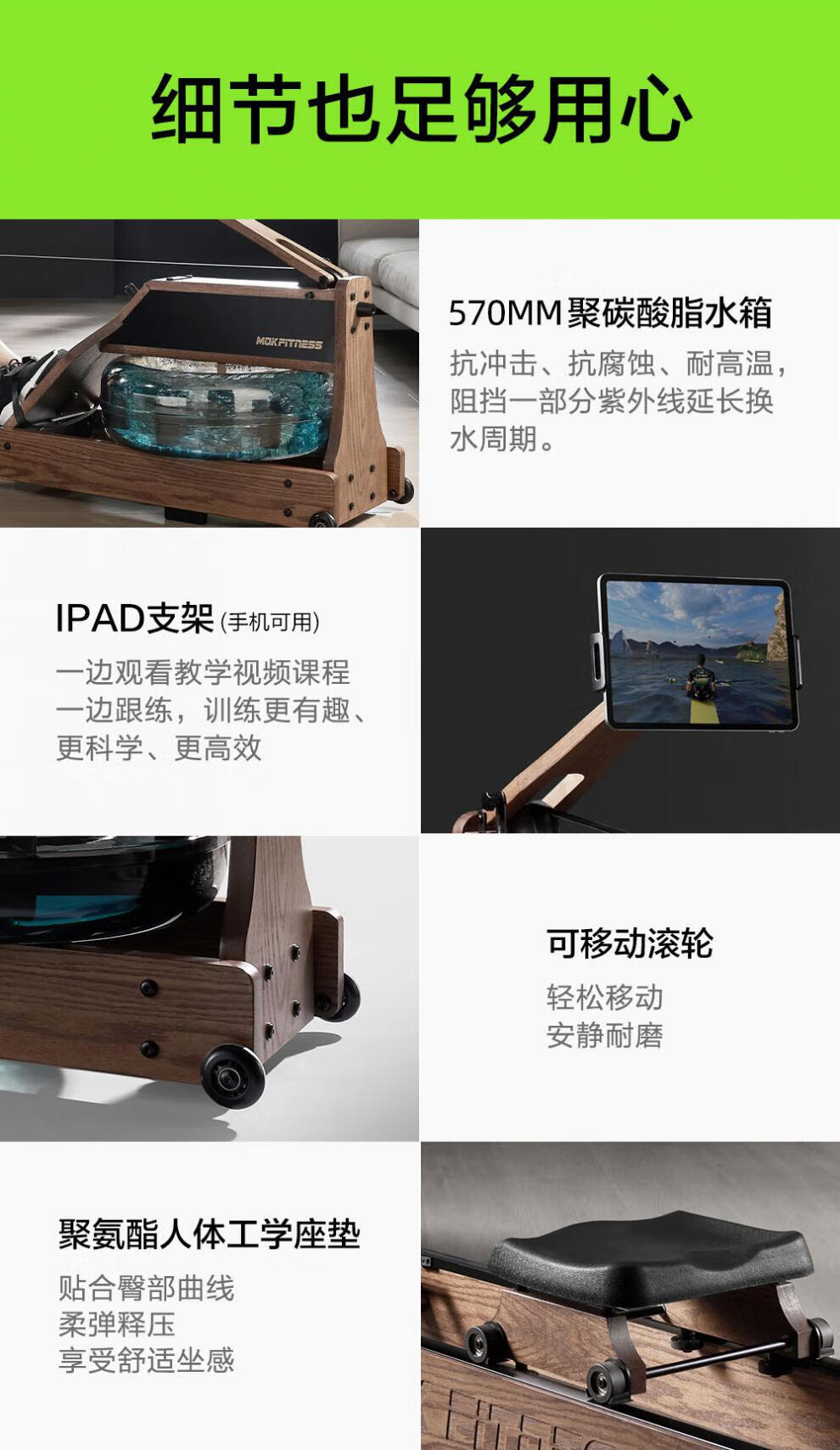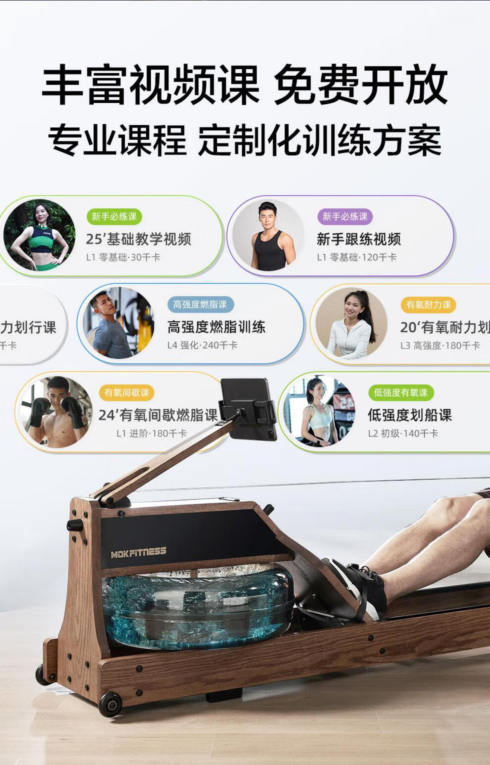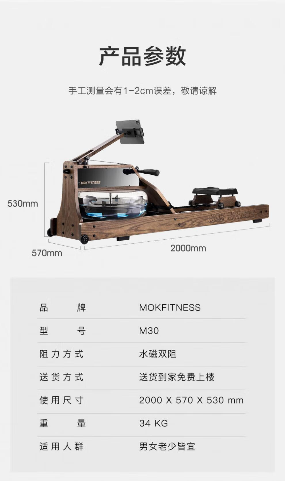 MOKFITNESSMOK Mokeng rowing machine M30 water magnetic dual resistance household smart folding water resistance rowing machine magnetic M30ES (cherry wood)