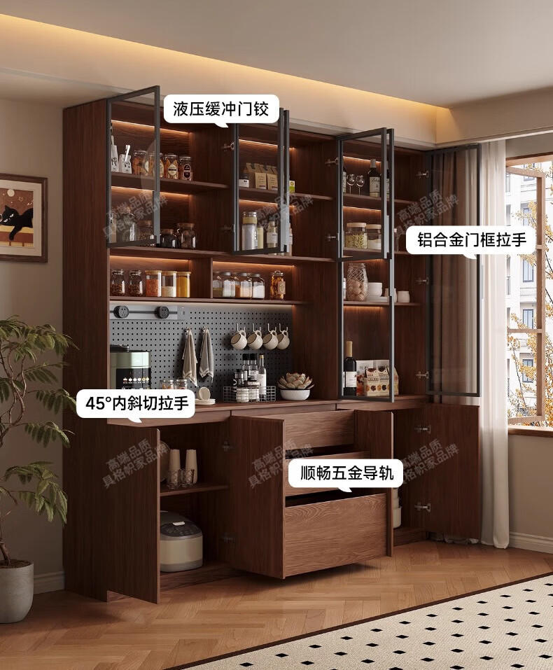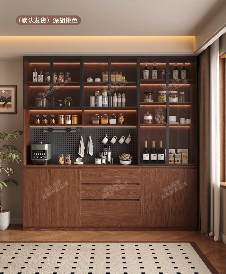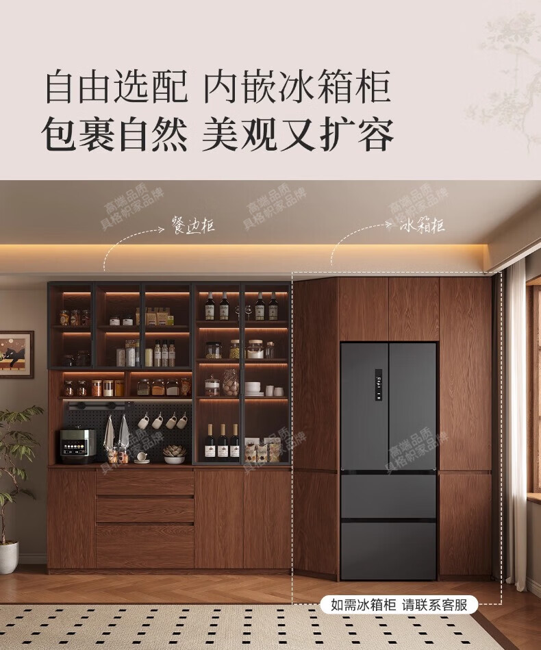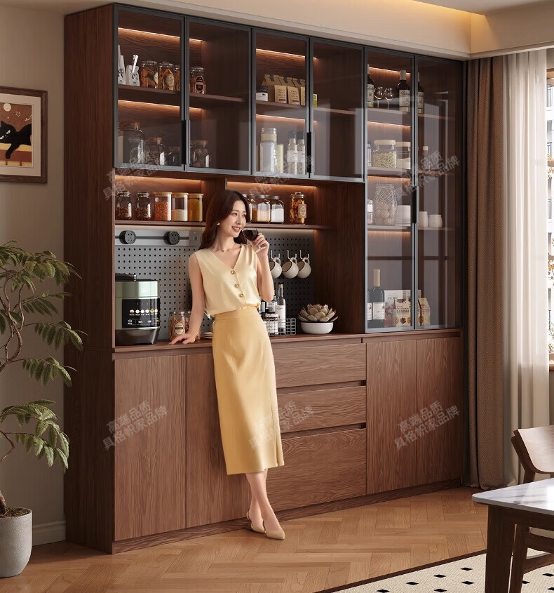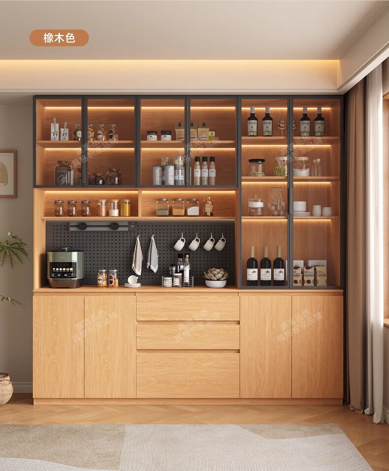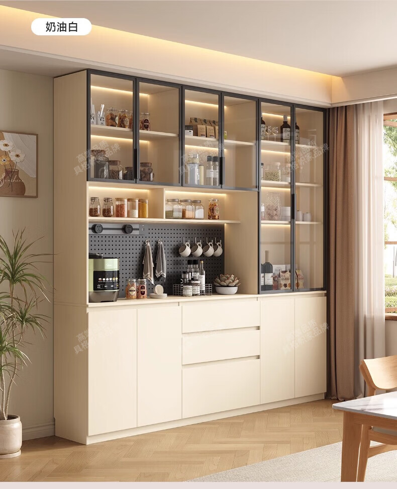 Gugezhijia customized solid wood sideboard against the wall, integrated storage cabinet, warm white storage cabinet, wine cabinet, kitchen dining table integrated cabinet, 2.0 meters long