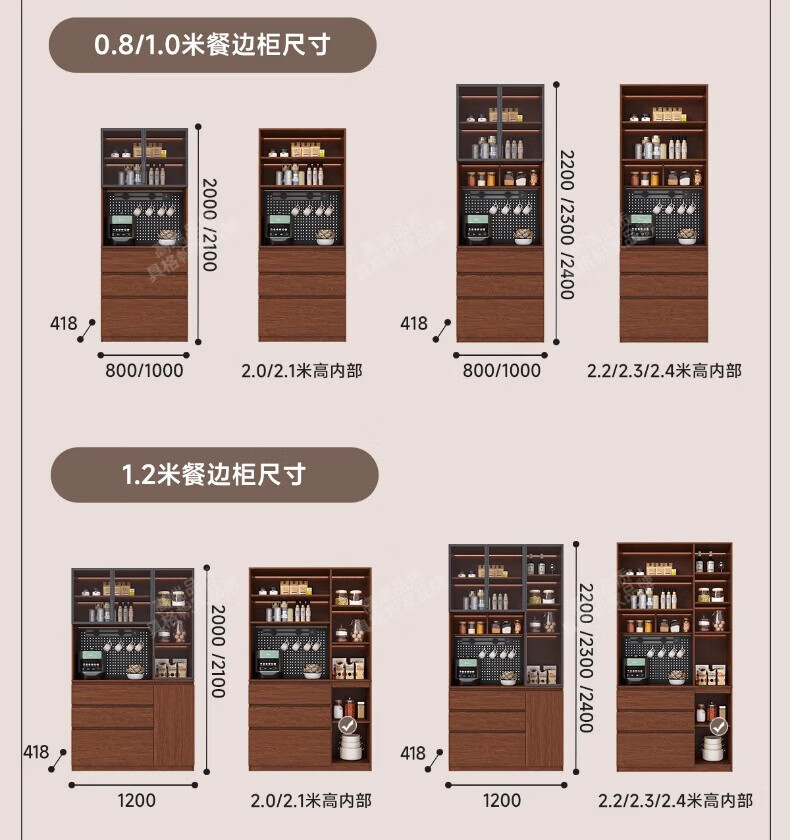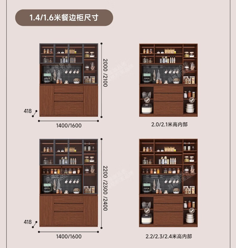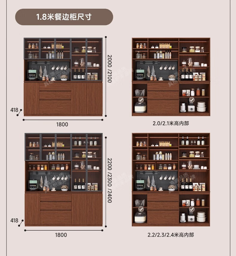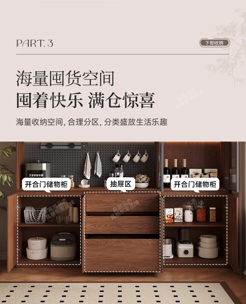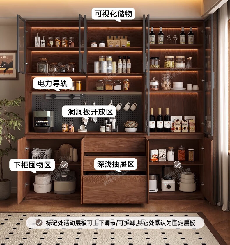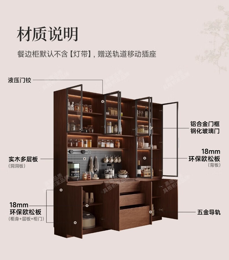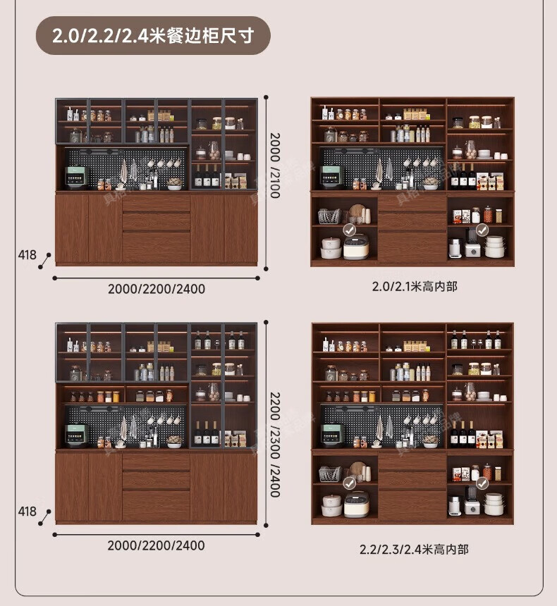 Gugezhijia customized solid wood sideboard against the wall, integrated storage cabinet, warm white storage cabinet, wine cabinet, kitchen dining table integrated cabinet, 2.0 meters long
