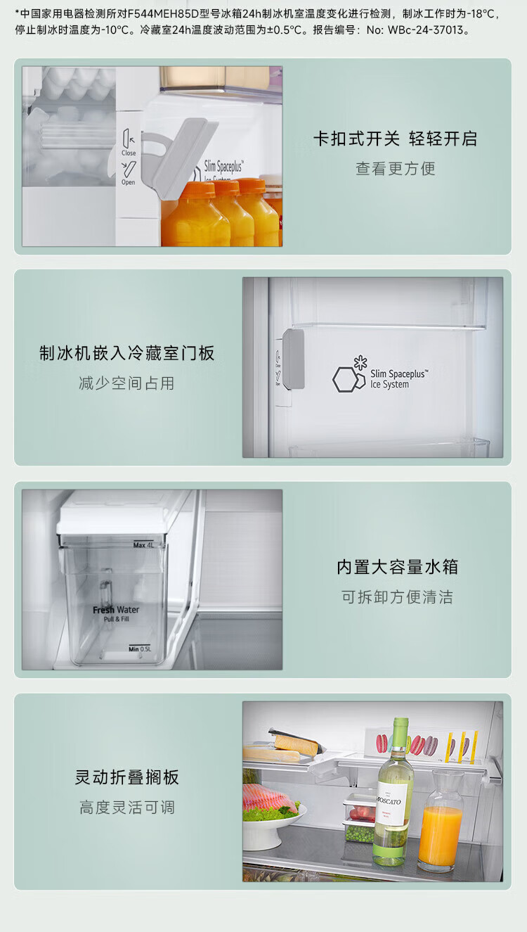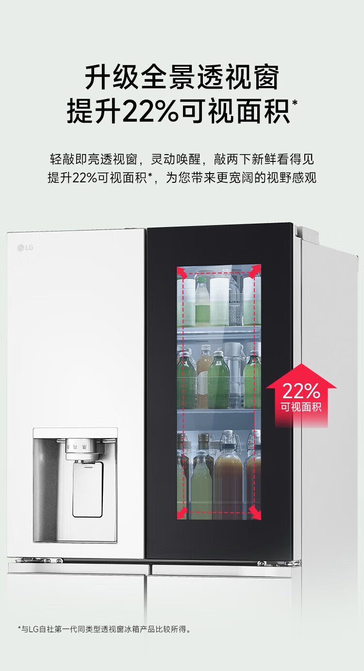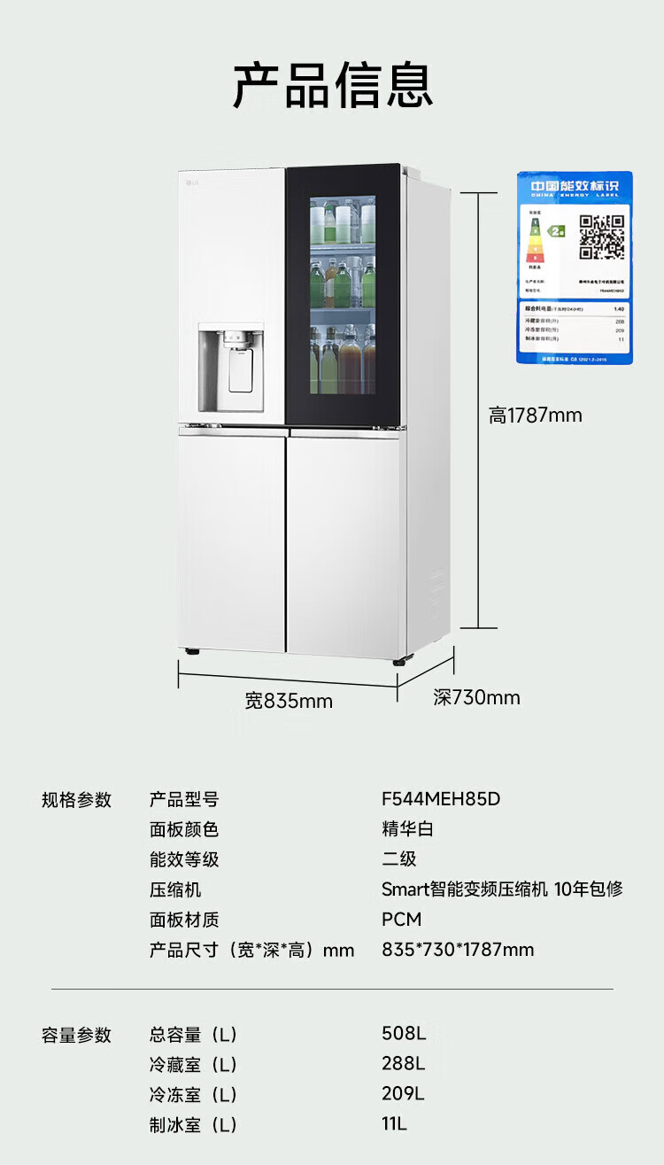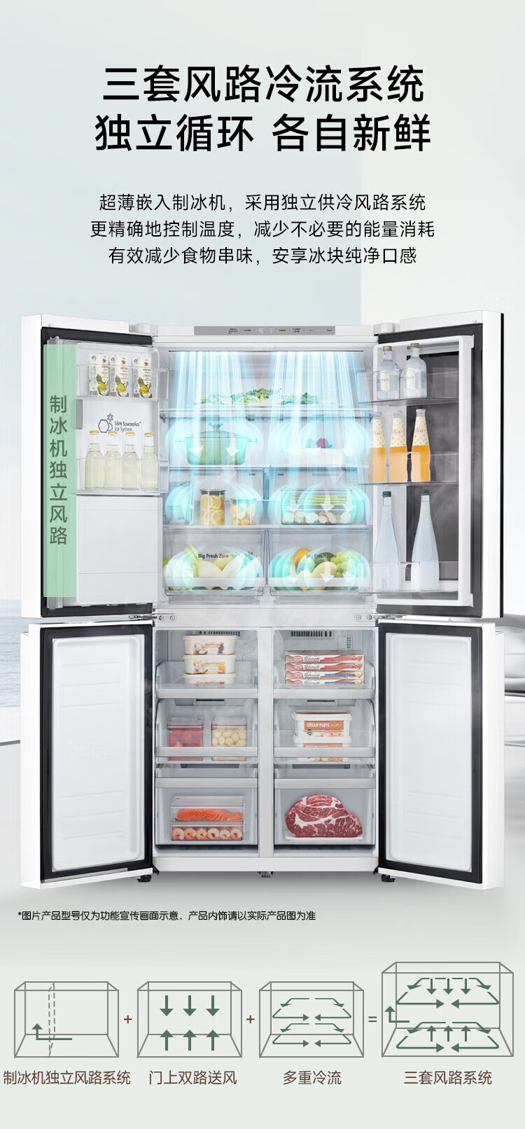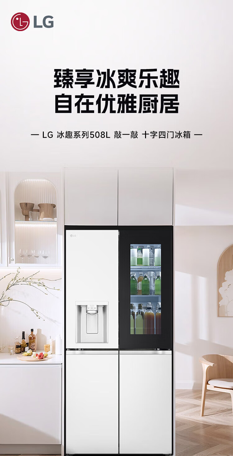 LG508L Cross Four Door Refrigerator Smart Automatic Ice Maker Tap and Instant See-through Window Beauty Refrigerator Air-cooled and Frost-free Ultra-thin Energy-Saving Frequency Converter F544MEH85D Knock on Essence White 508L Ice Maker Refrigerator