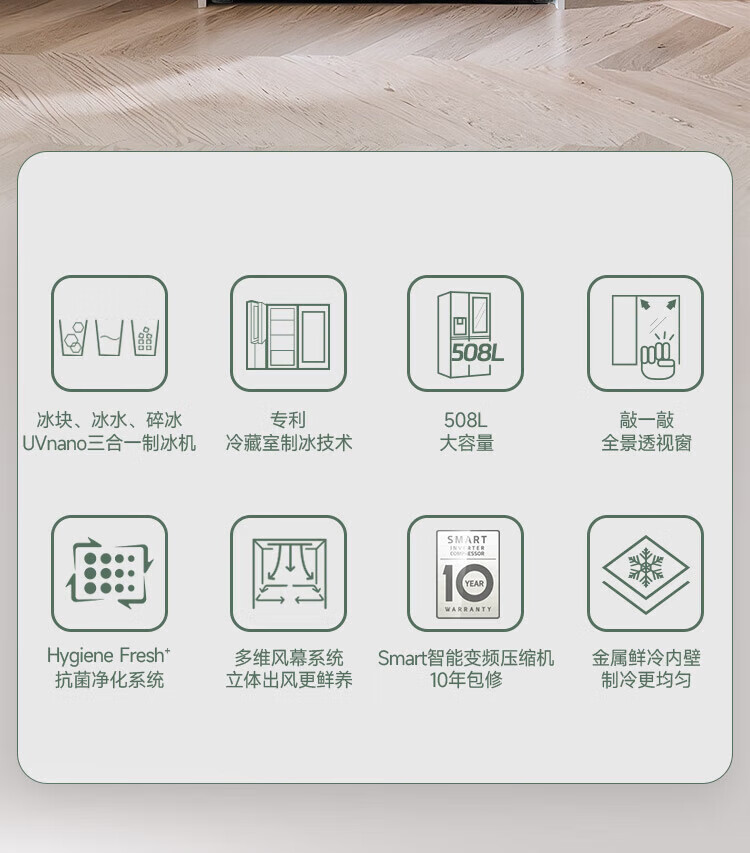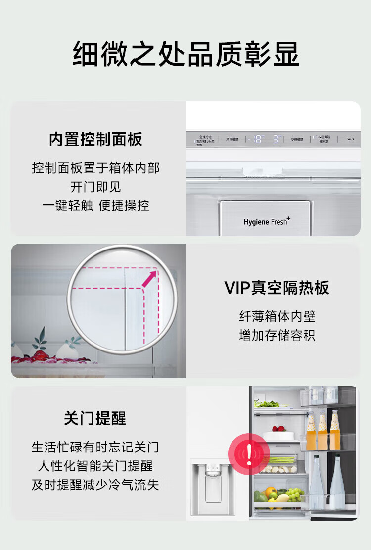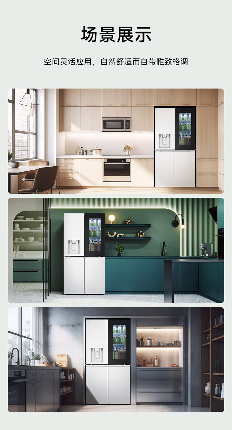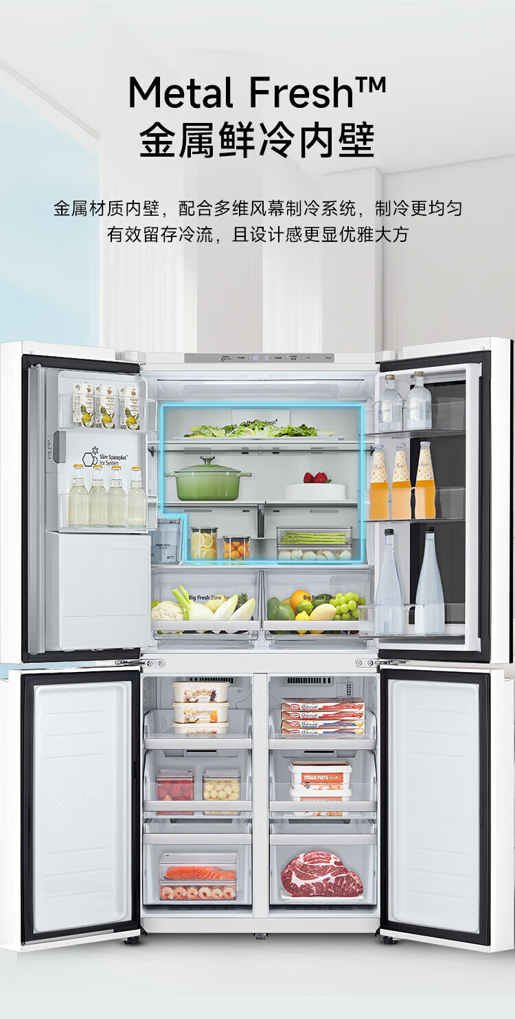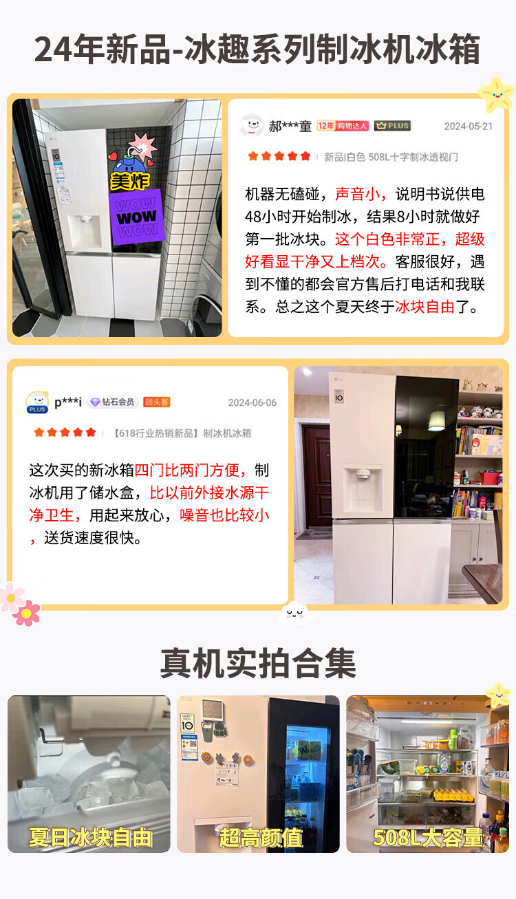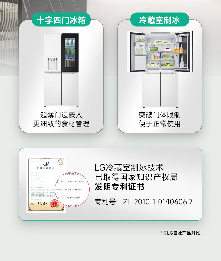 LG508L Cross Four Door Refrigerator Smart Automatic Ice Maker Tap and Instant See-through Window Beauty Refrigerator Air-cooled and Frost-free Ultra-thin Energy-Saving Frequency Converter F544MEH85D Knock on Essence White 508L Ice Maker Refrigerator