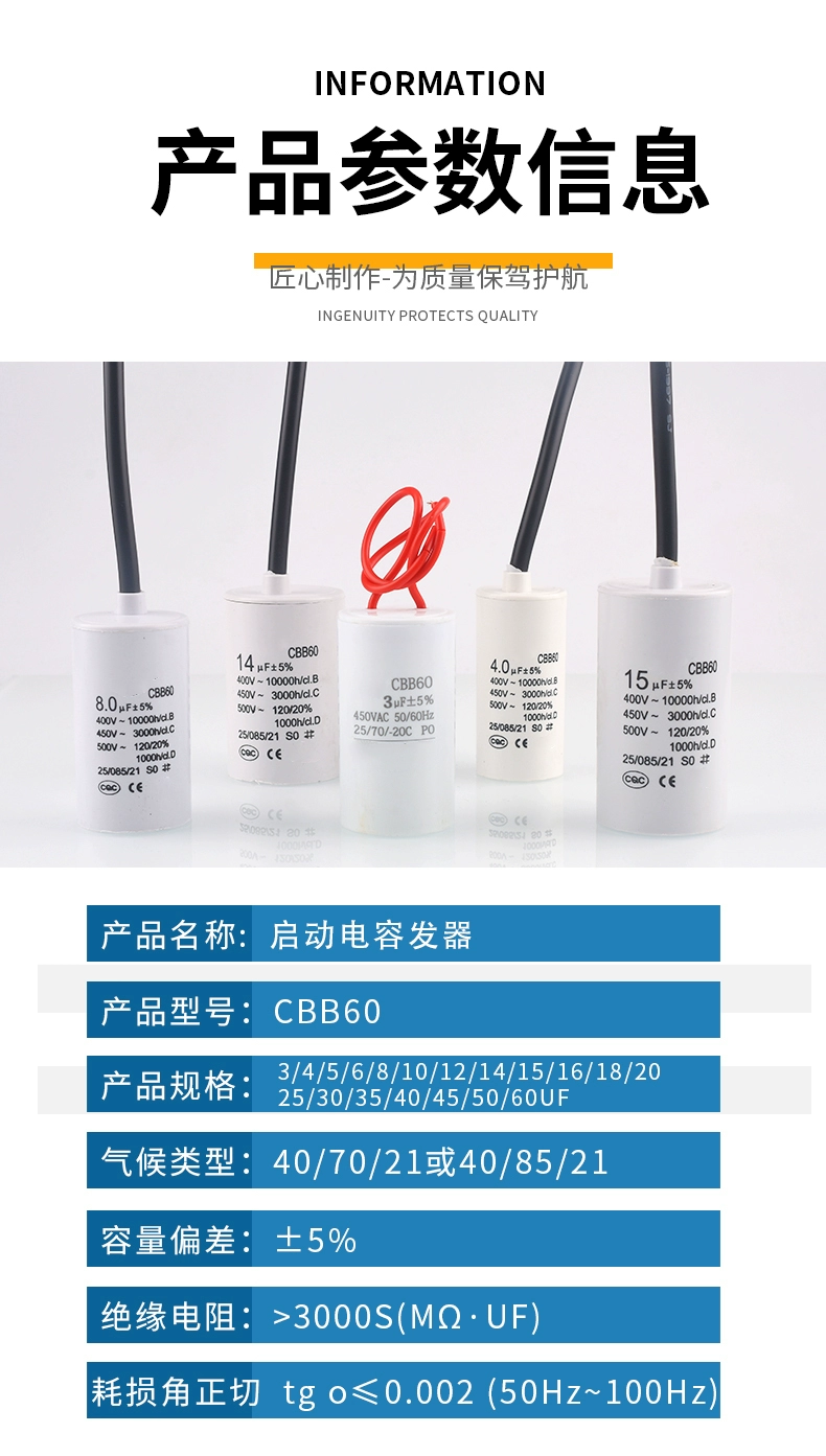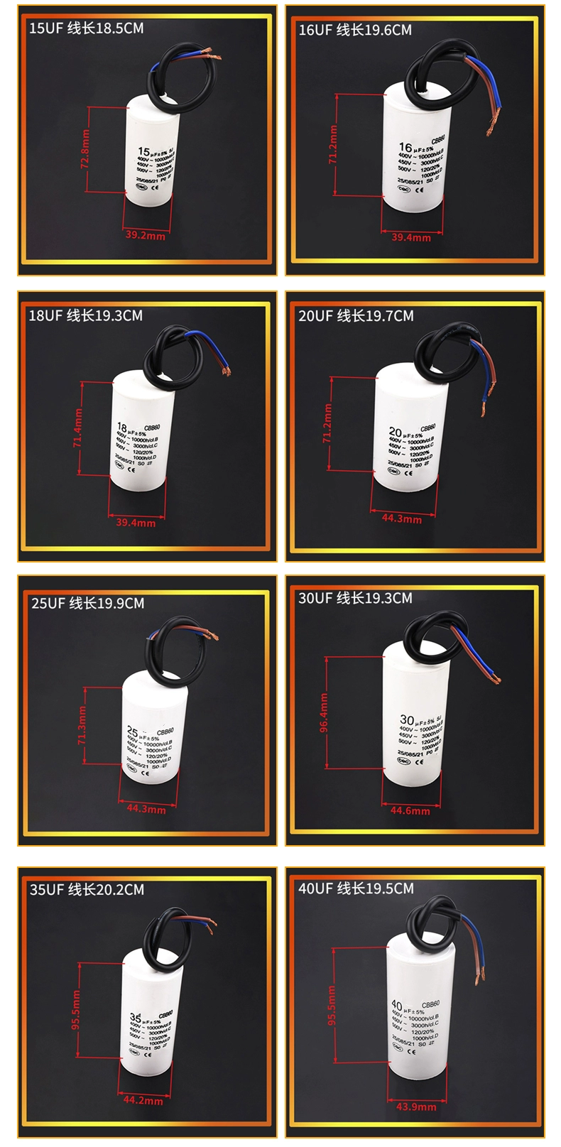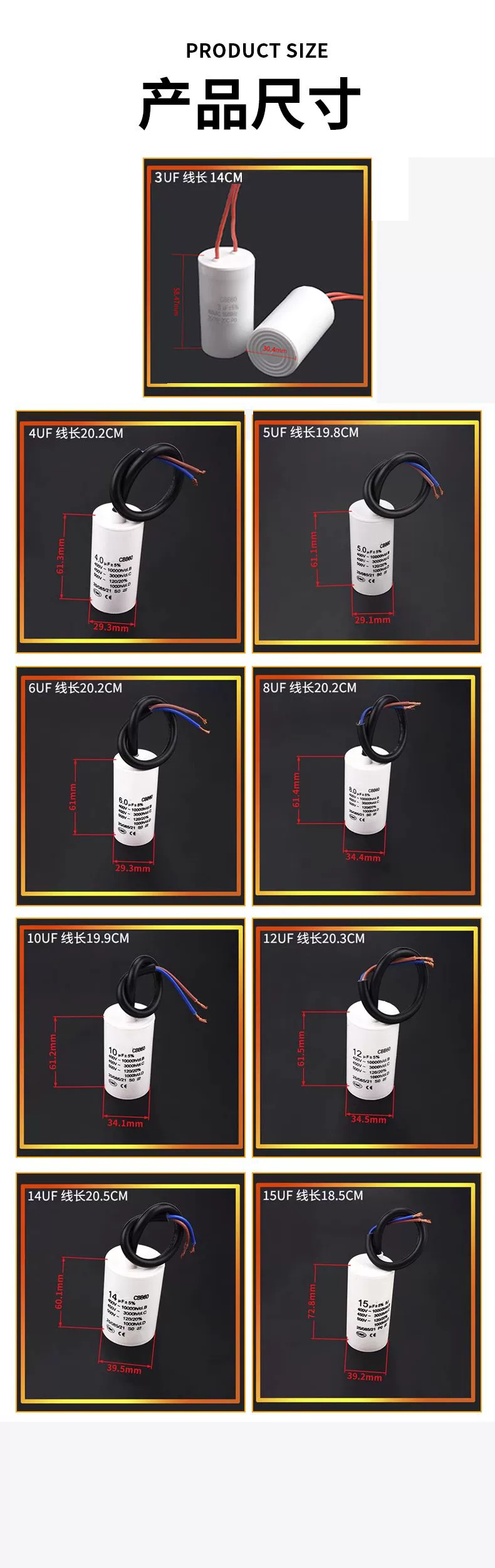 Starting capacitor CBB60 washing machine 4/5/6/8/10/15/20/25UF water pump motor spin dryer 6UF