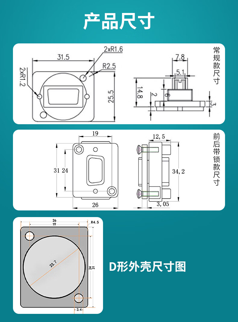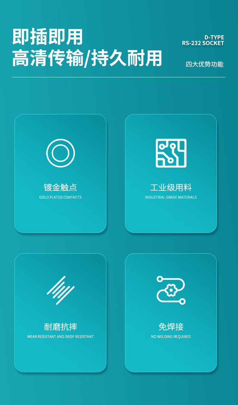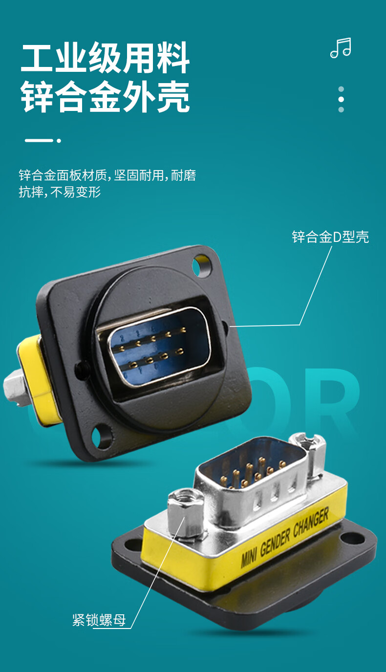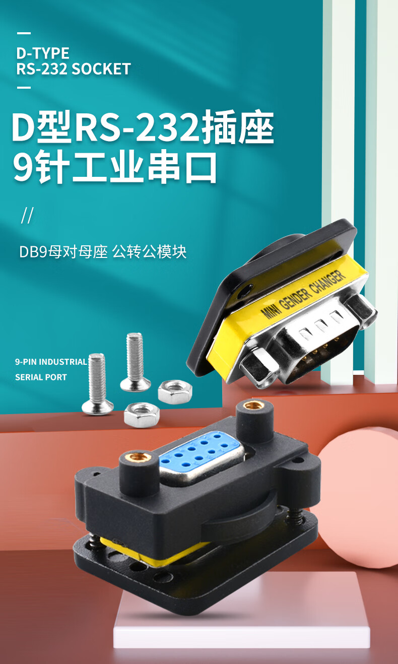 D-type RS-232 socket 9-pin industrial serial port docking base DB9 female to female base male to male module front and rear lockable DB9 female to female silver