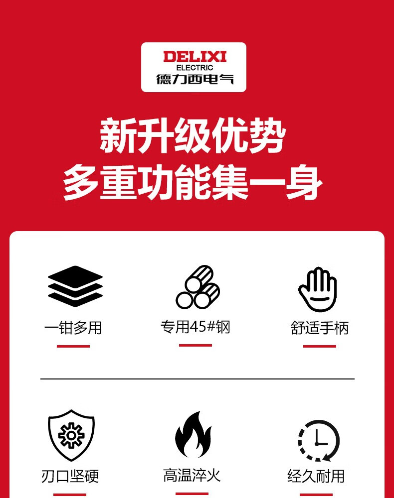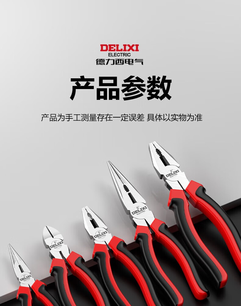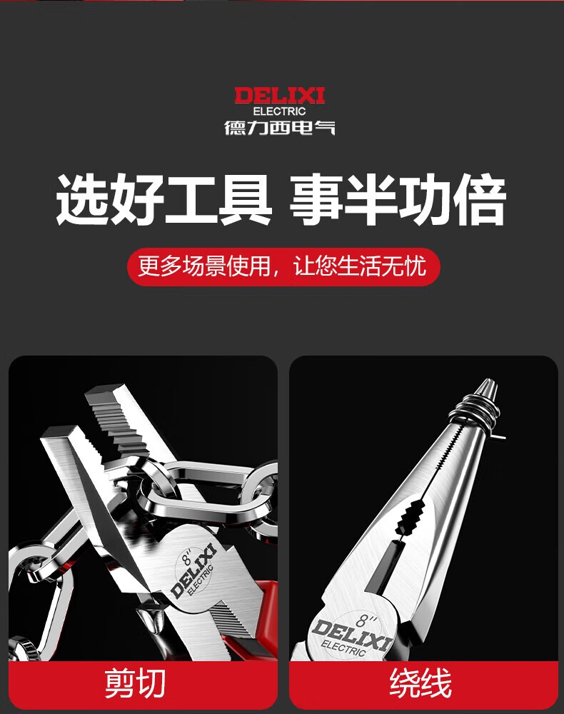 Delixi Electric vise, industrial grade pliers, multifunctional wire pliers, diagonal pliers, needle nose pliers, electrician special pliers, industrial grade 8-inch wire pliers