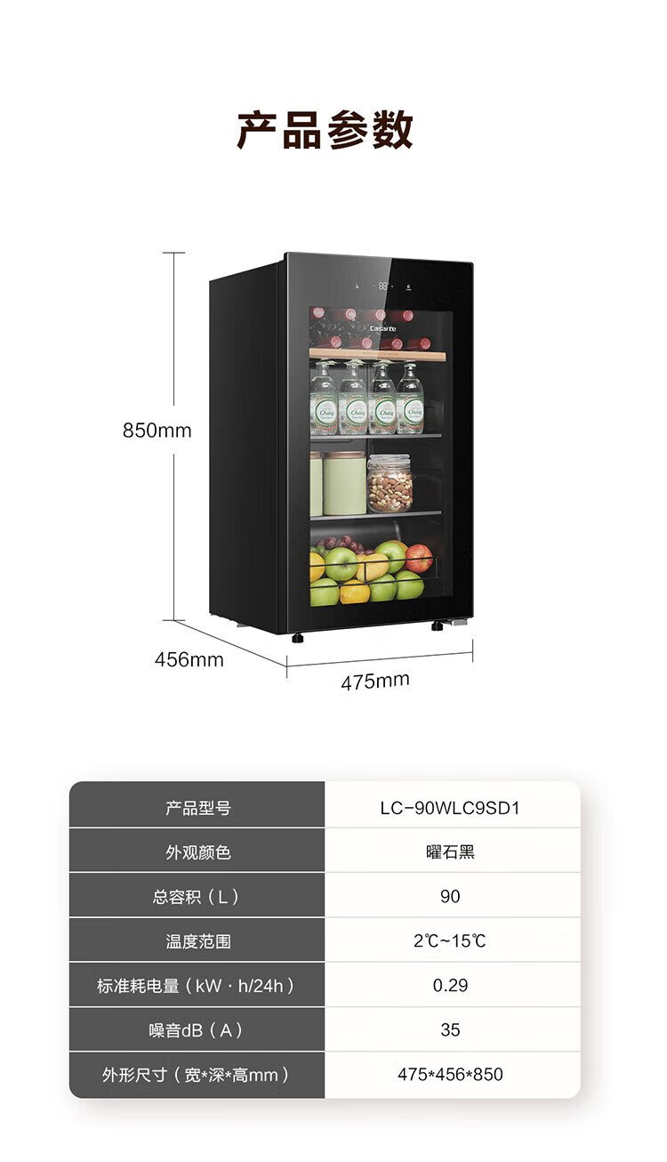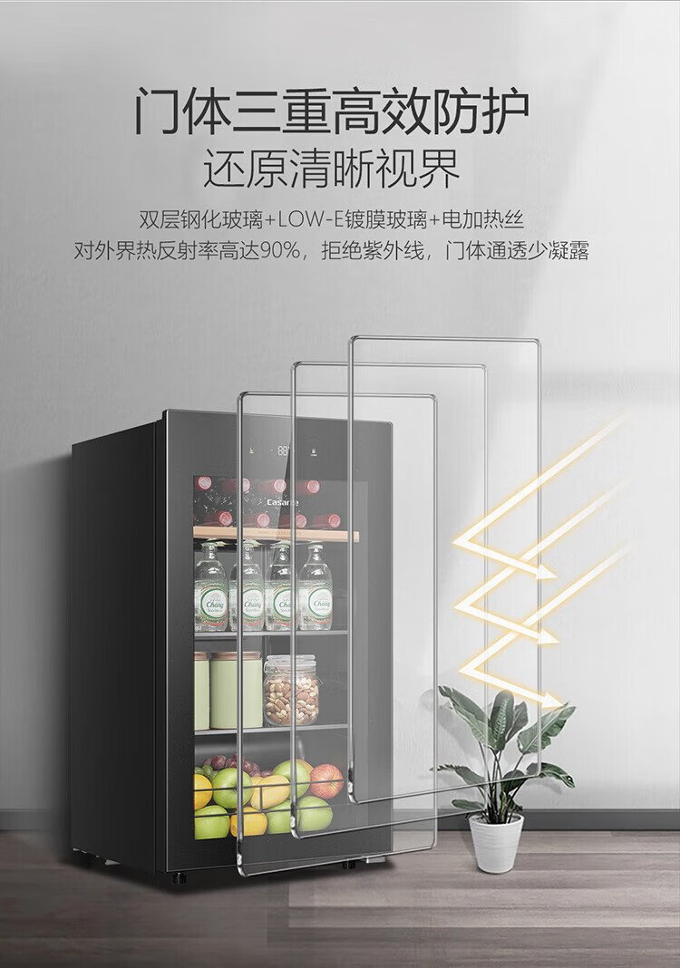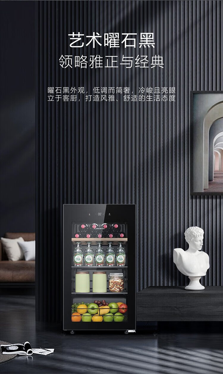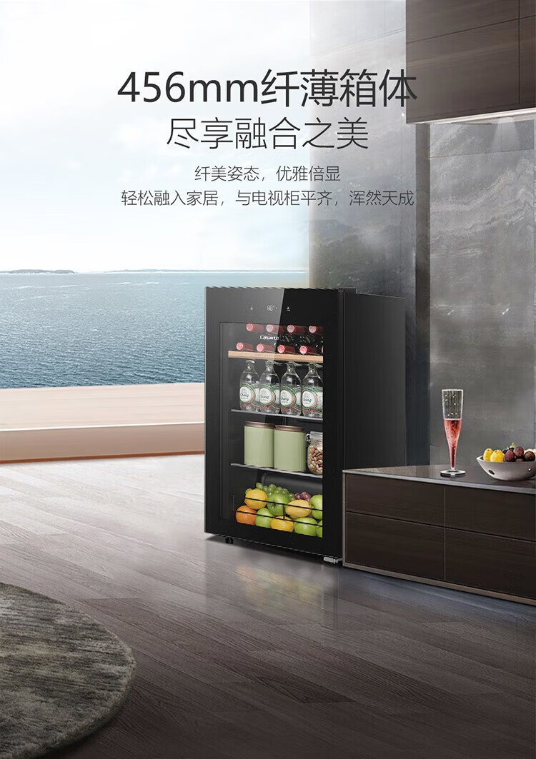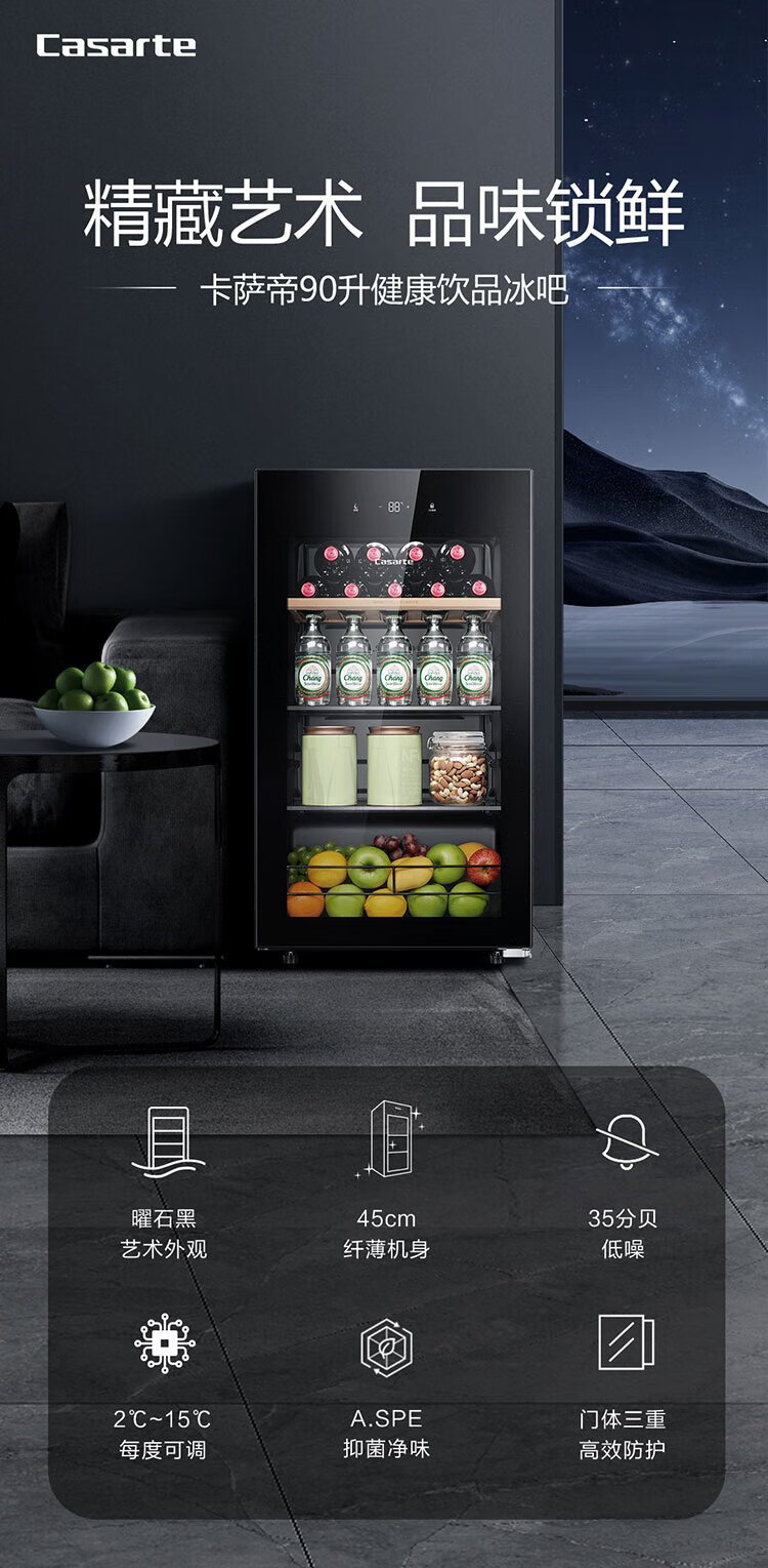 Casarte ice bar home office living room home ice bar air-cooled frost-free first-level energy efficiency small ice bar refrigerator wine refrigerator beverage tea fruit fresh cabinet built-in ice bar Obsidian black | single temperature zone | air-cooled frost-free | small household | 90L official standard