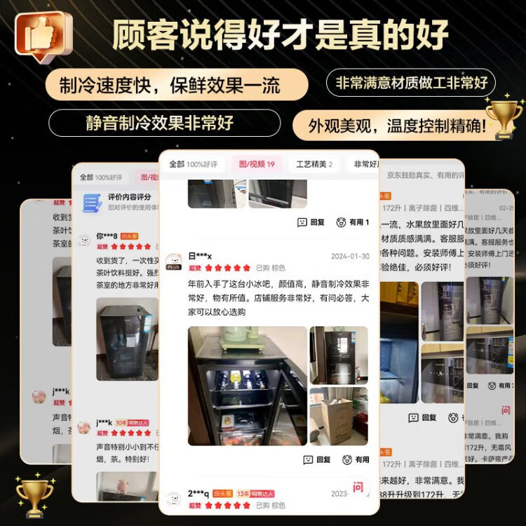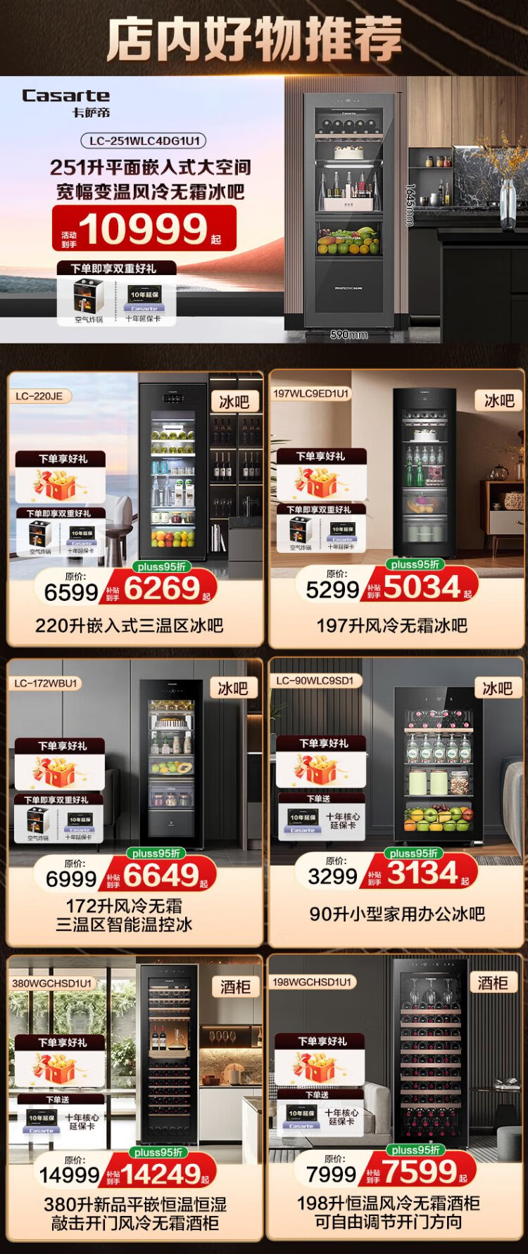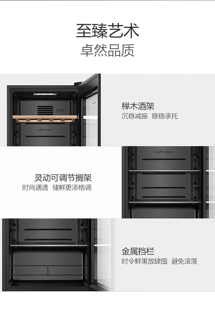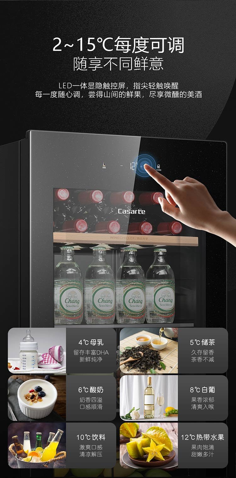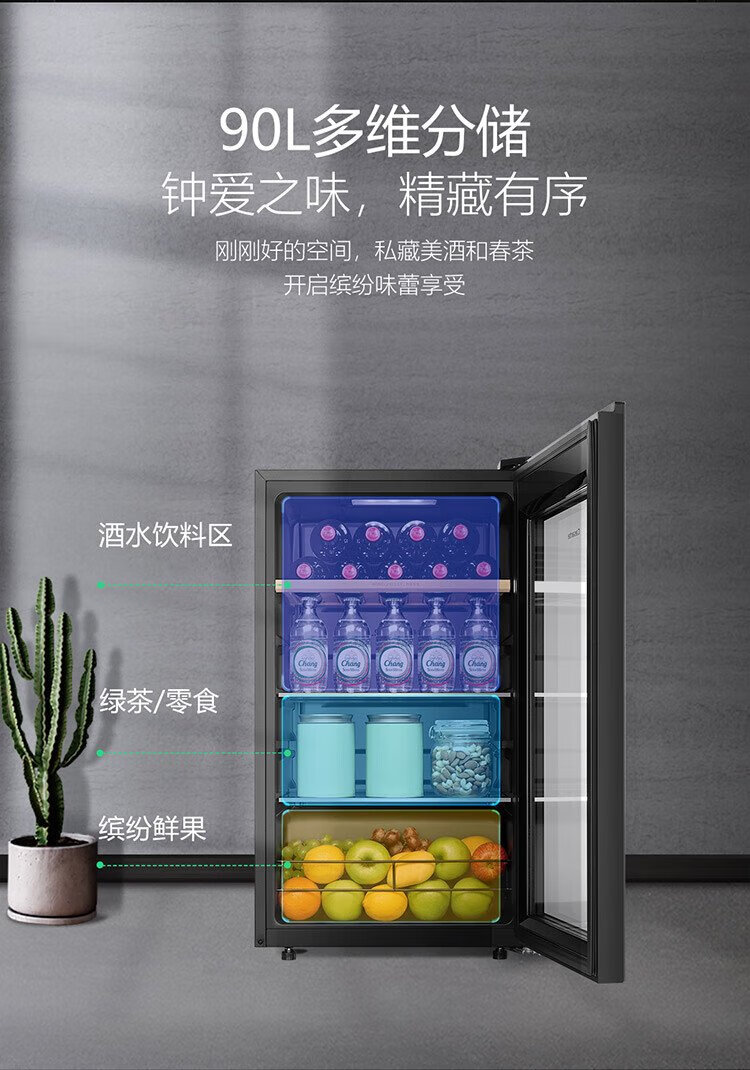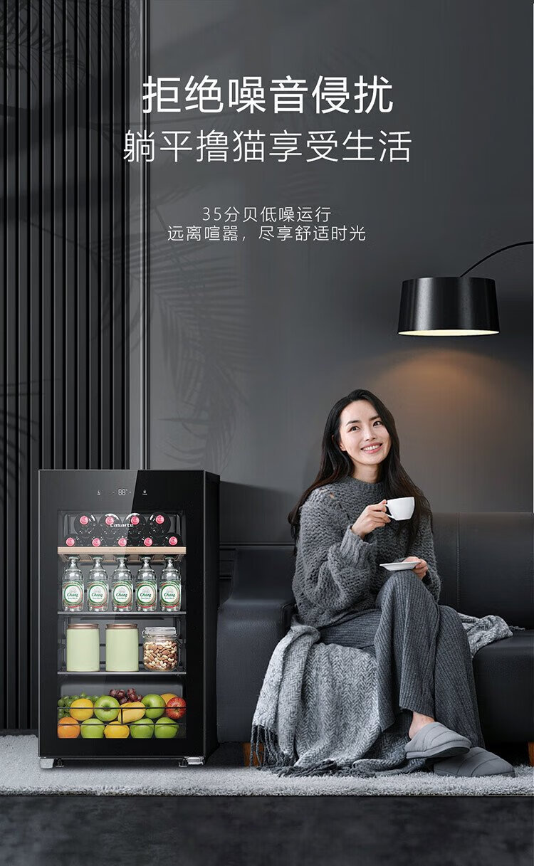 Casarte ice bar home office living room home ice bar air-cooled frost-free first-level energy efficiency small ice bar refrigerator wine refrigerator beverage tea fruit fresh cabinet built-in ice bar Obsidian black | single temperature zone | air-cooled frost-free | small household | 90L official standard