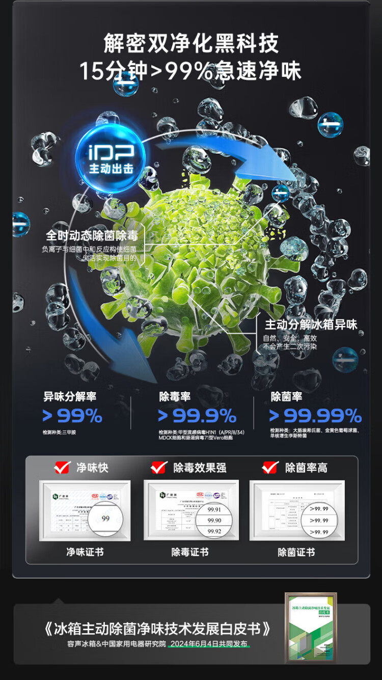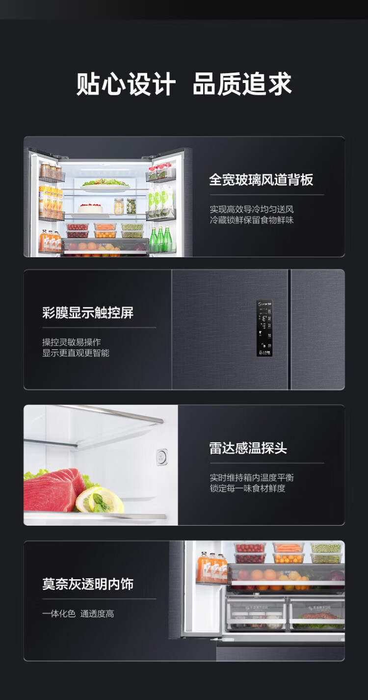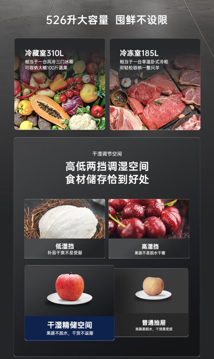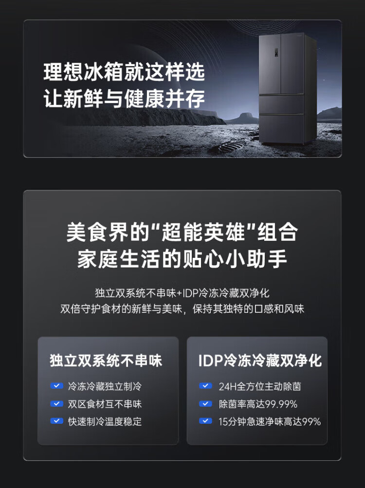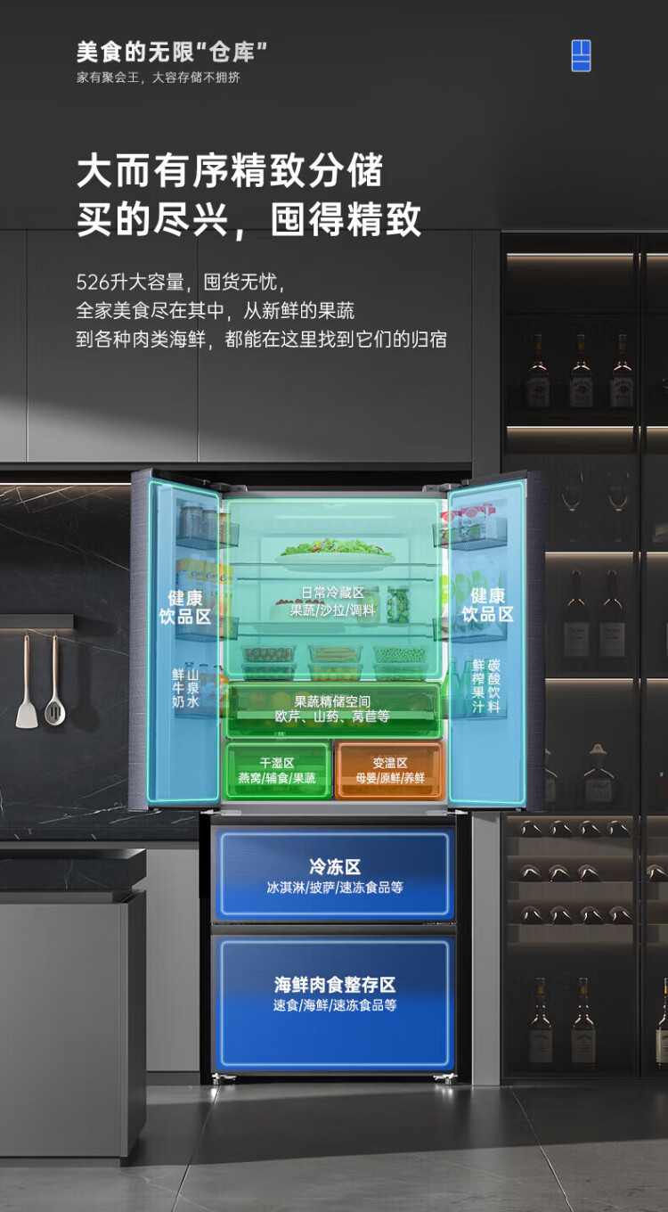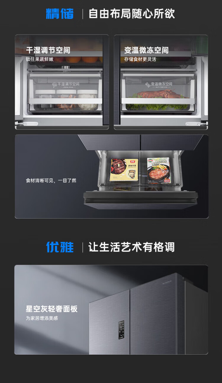 Rongsheng 526-liter dual-purification dual-system double-circulation French-style multi-door four-door refrigerator household large-capacity first-class energy-saving dual-frequency IDP active sterilization air-cooled frost-free Rongsheng 526-liter dual-purification dual-system sterilization refrigerator