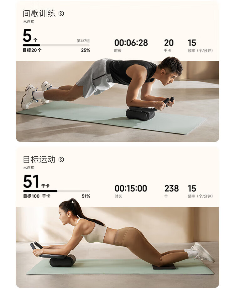 Xiaomi Mijia Smart Abdominal Wheel Widened Automatic Rebound Fitness Shaping Home Version Mijia APP Sports Data Mijia Smart Abdominal Wheel