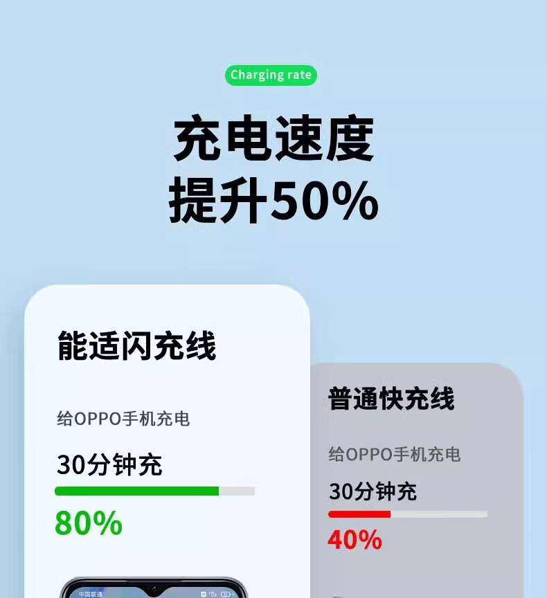 Suitable for OPPO data cable typec charging cable fast charging original reno6 reno7 r17 charger cable reno3 super flash charging special set 2.0 meters cable supports 67W flash charging protocol, fully charged in 30 minutes