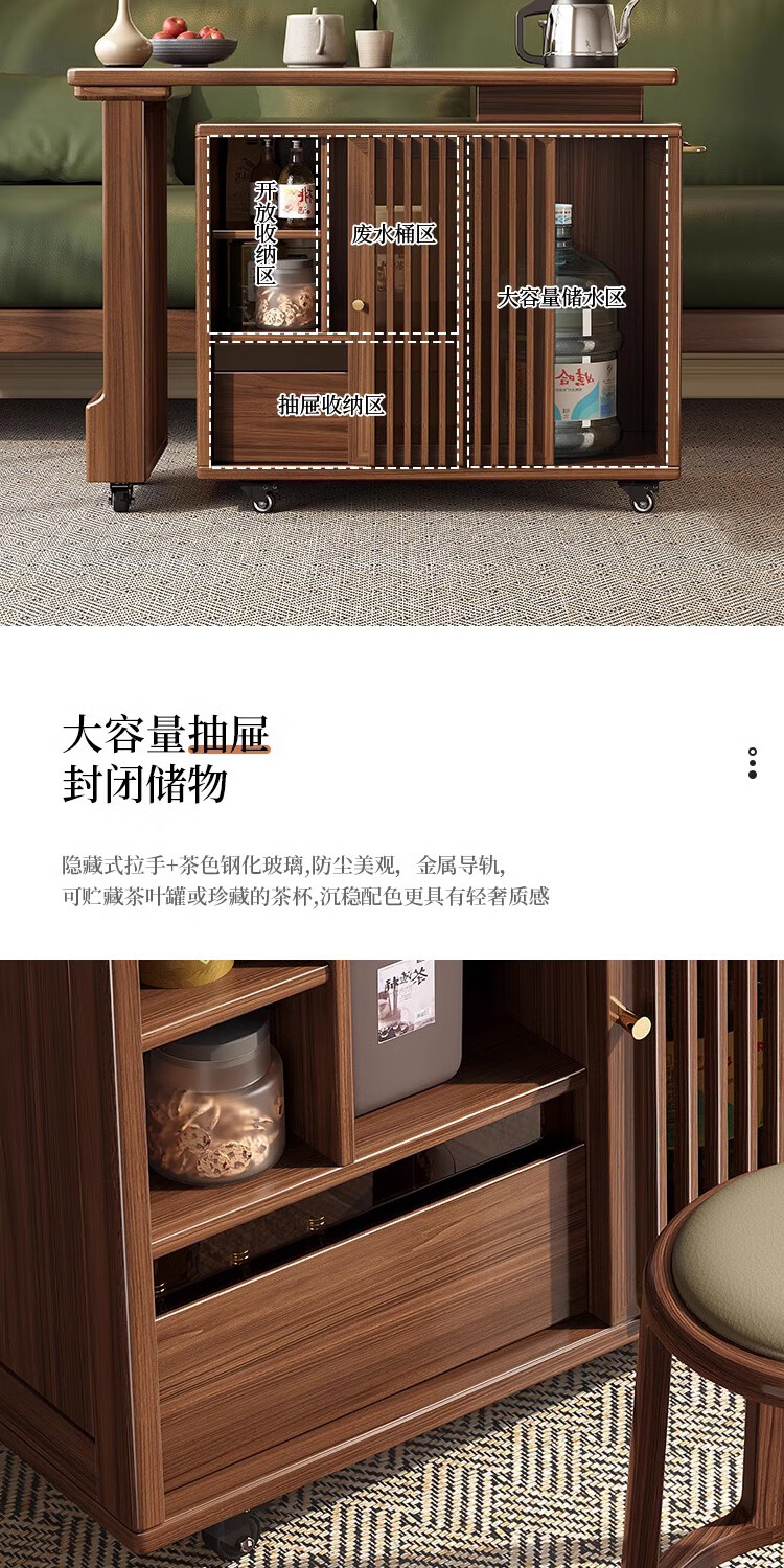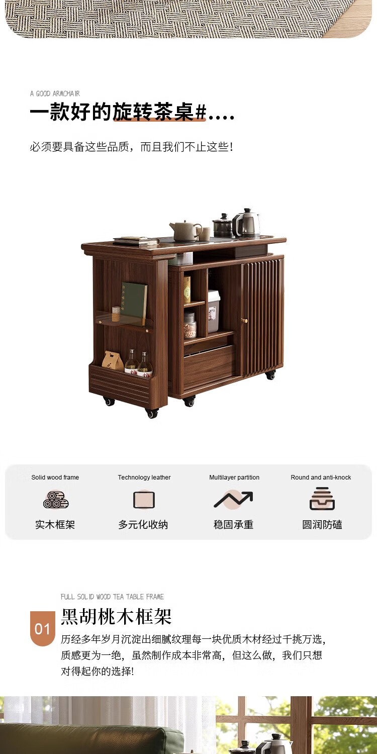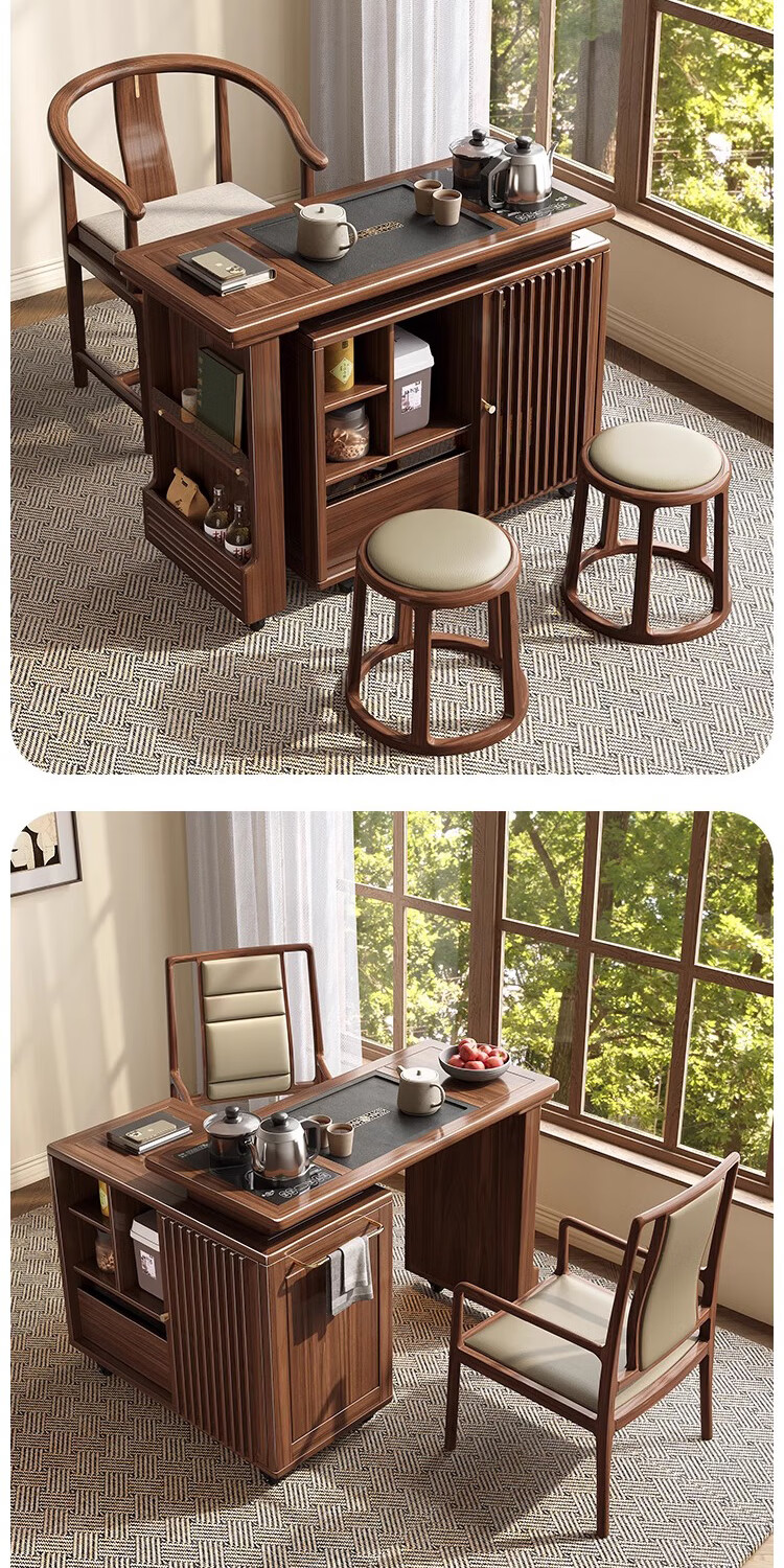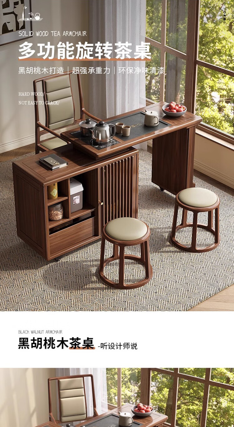 Geya wood language black walnut solid wood tea table integrated rotatable small tea table new Chinese style creative kung fu coffee table movable tea cabinet tea table
